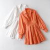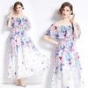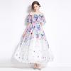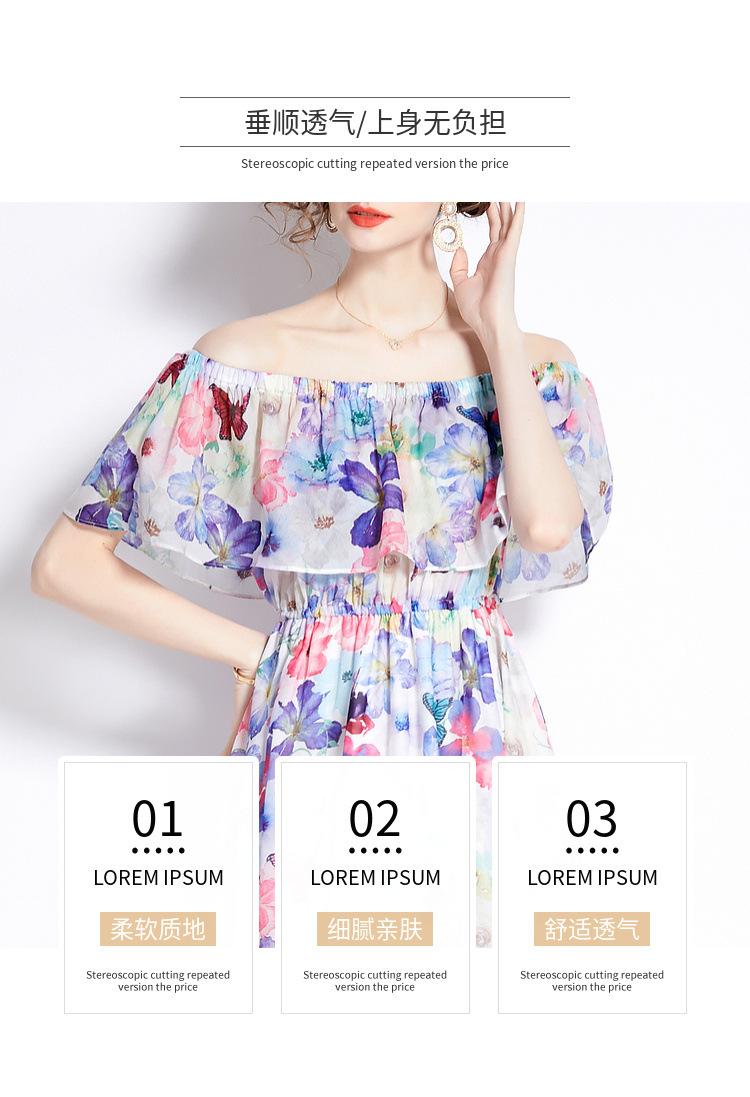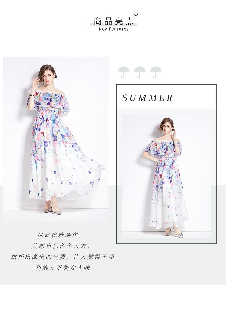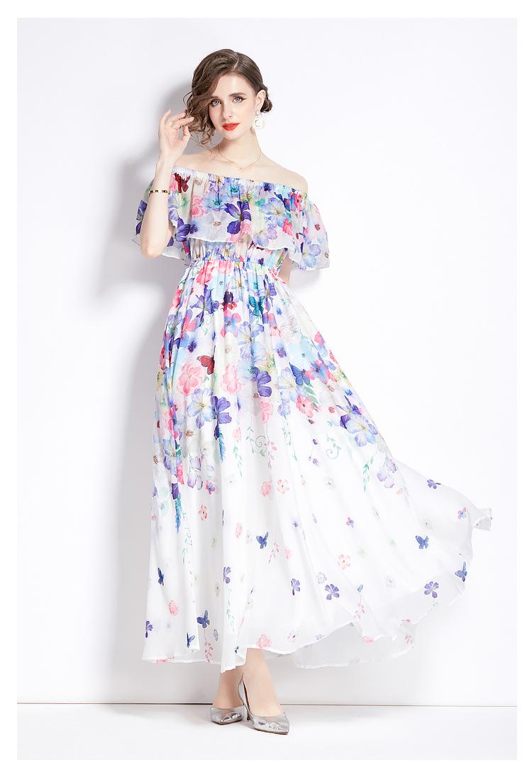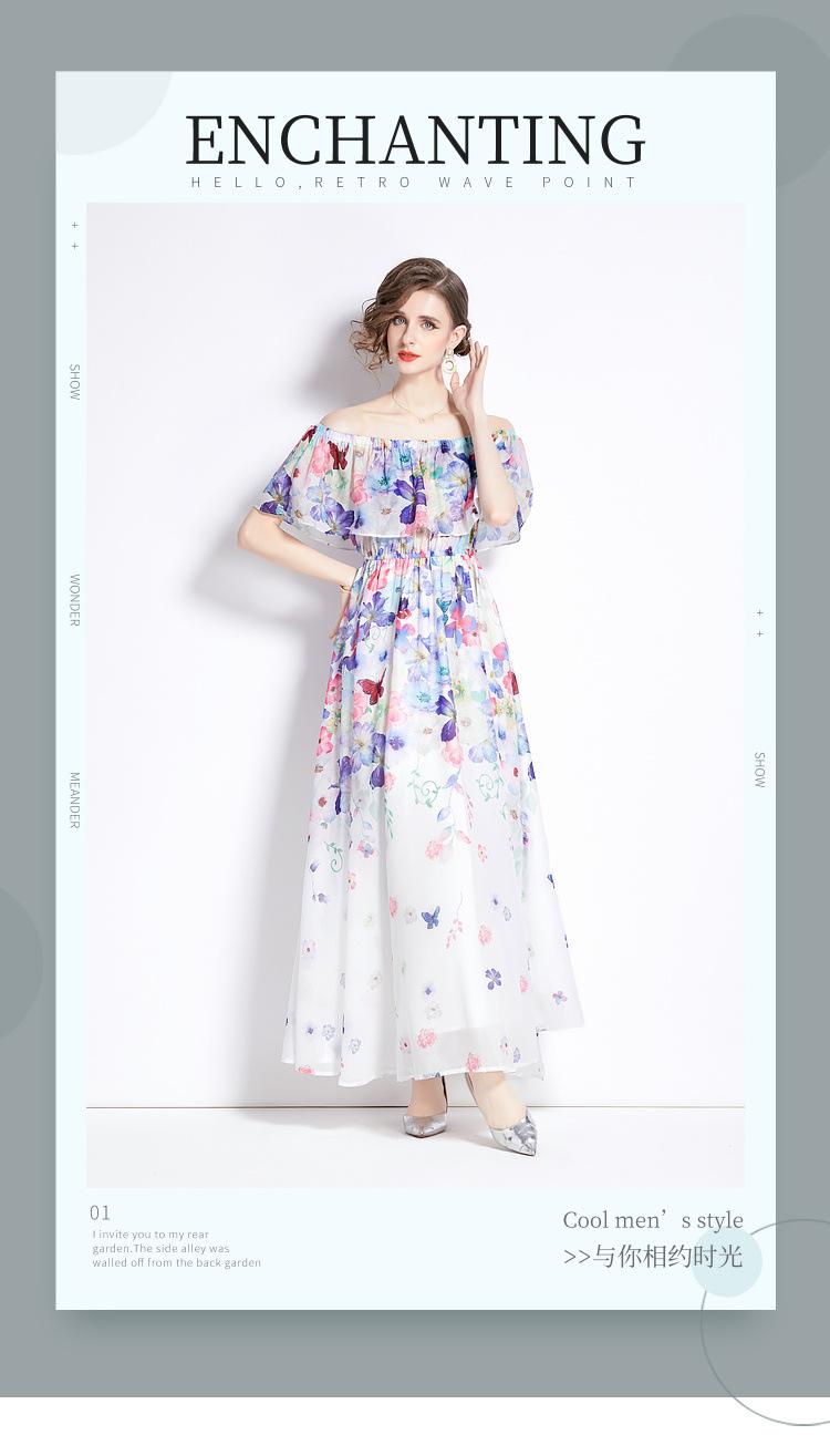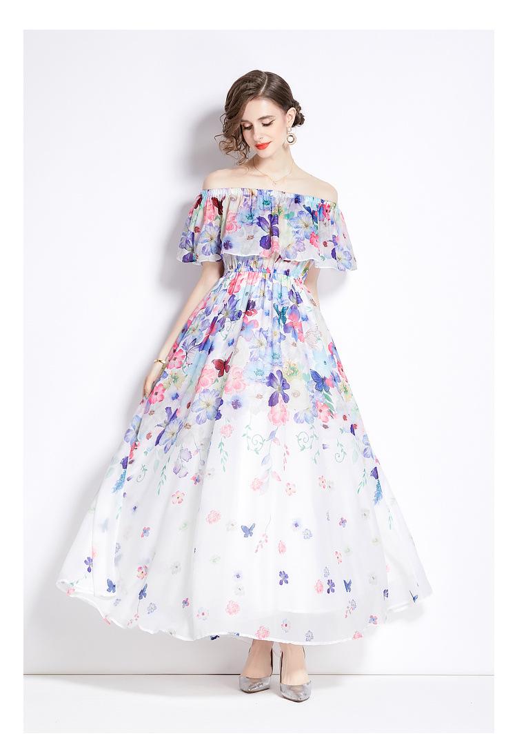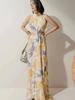 Nuevo vestido de gasa dividido con volantes, escote pronunciado, cintura ajustada y falda playera de vuelo grande para mujer
