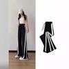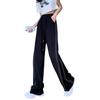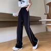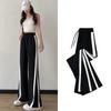 Pantalones deportivos de cintura alta, adelgazantes, de verano, con rayas laterales, holgados, de seda helada, con pierna recta y ancha.