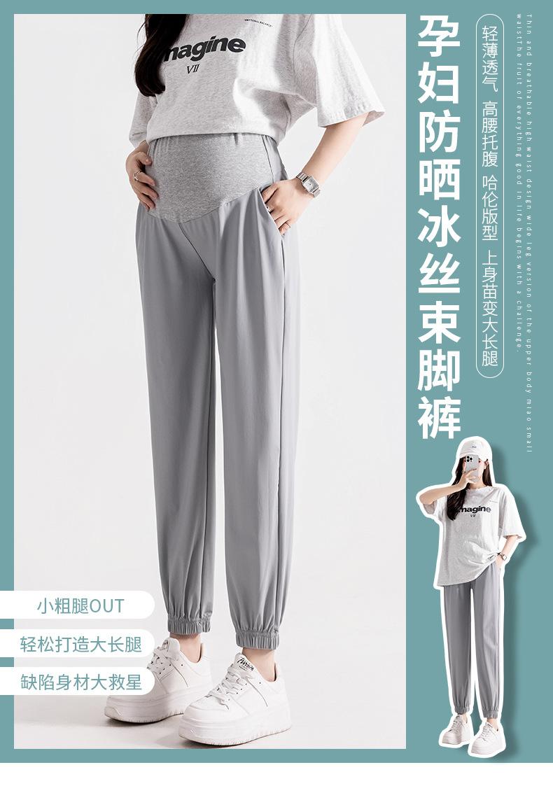 Pantalones para embarazadas, novedad de verano 2024, ropa exterior, pantalones deportivos finos, adelgazantes, de seda helada, pantalones casuales antimosquitos, pantalones abdominales para embarazadas.