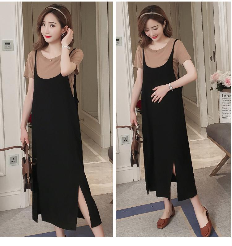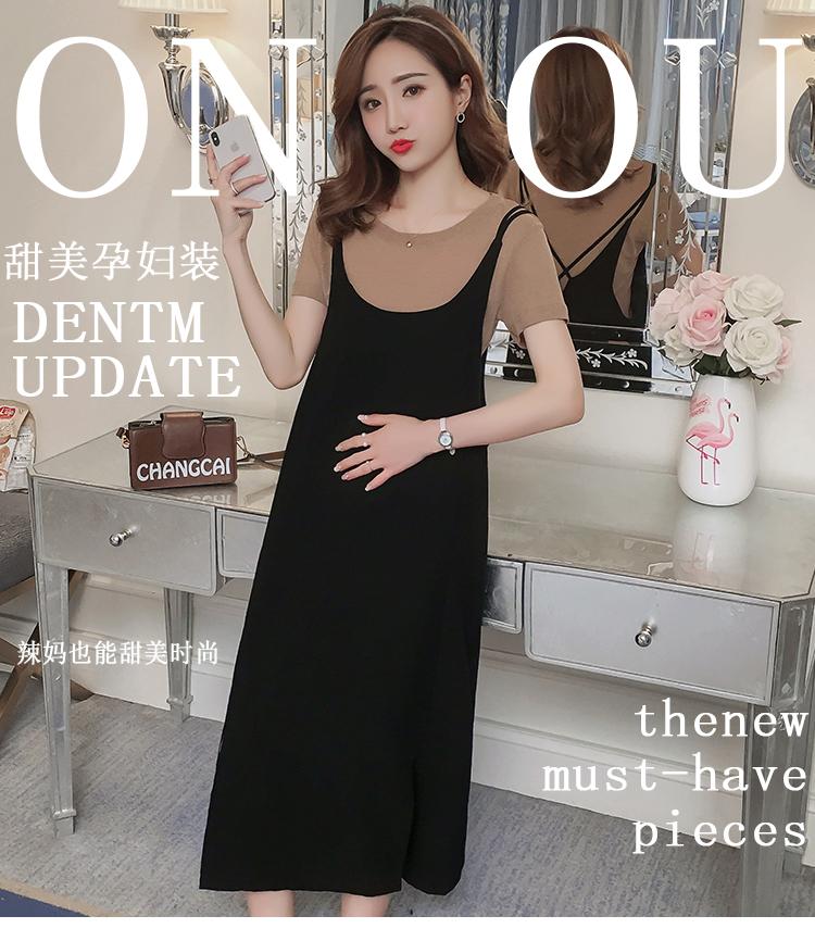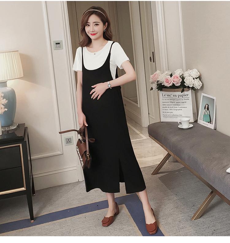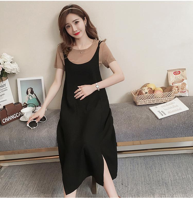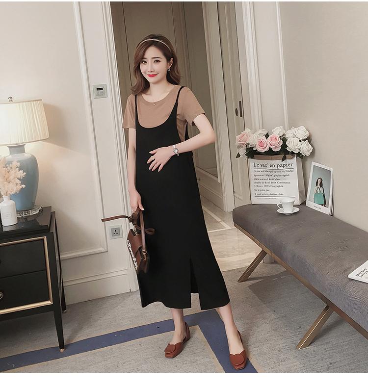 Ropa de maternidad 2022 verano nueva falda con tirantes divididos + camiseta de dos piezas suelta de talla grande vestido de mujer embarazada