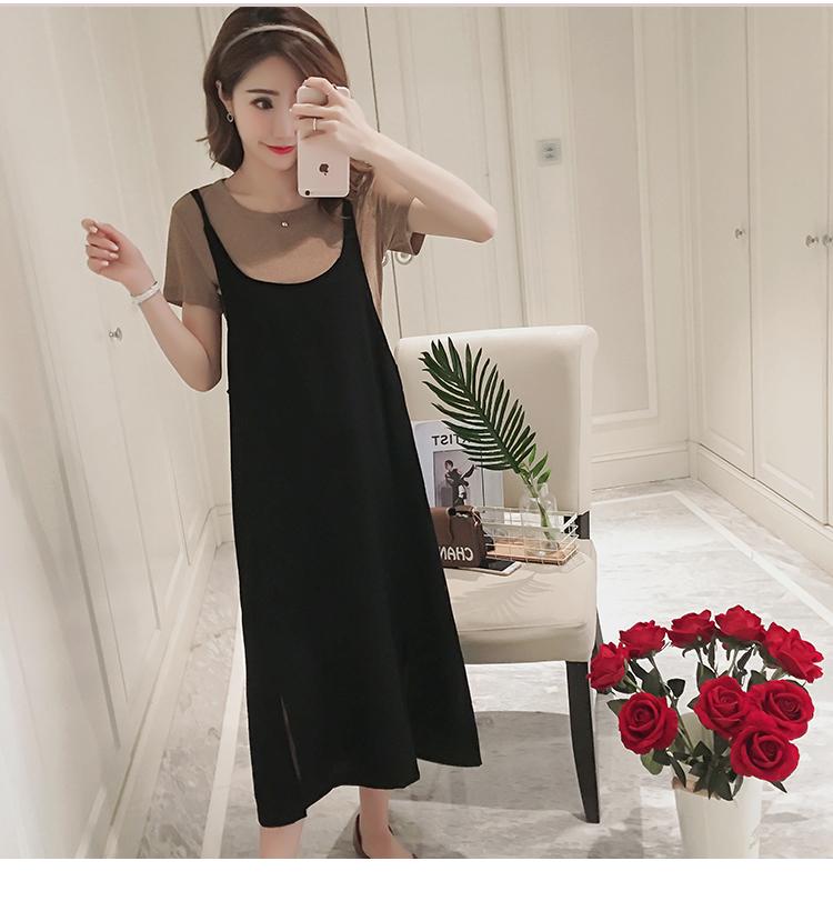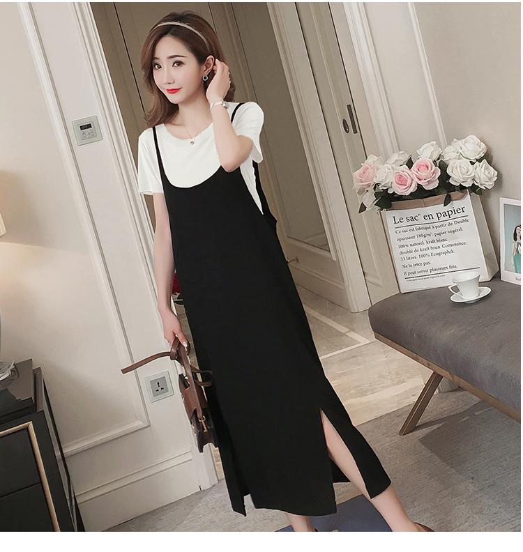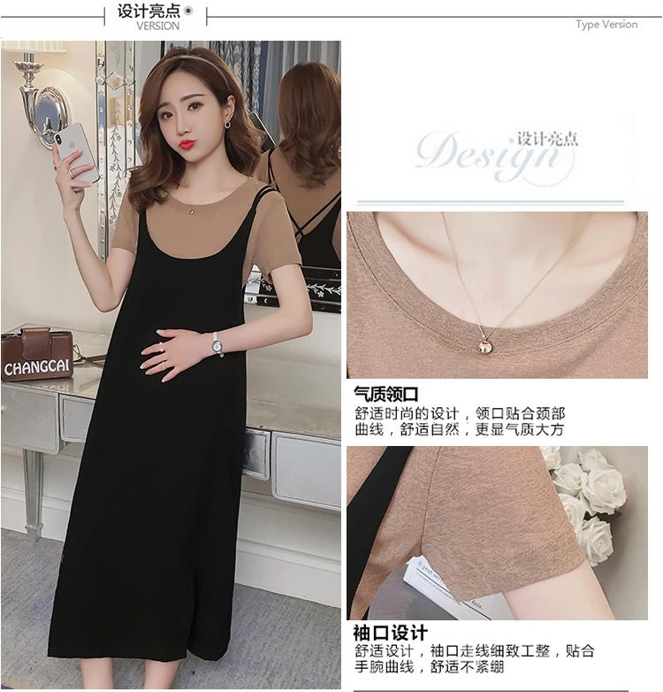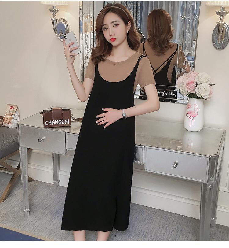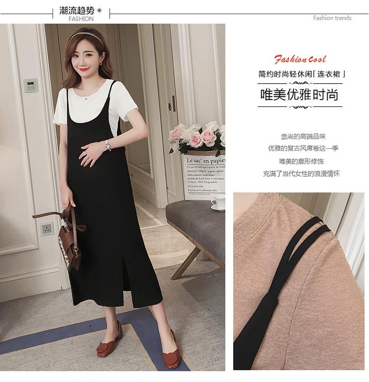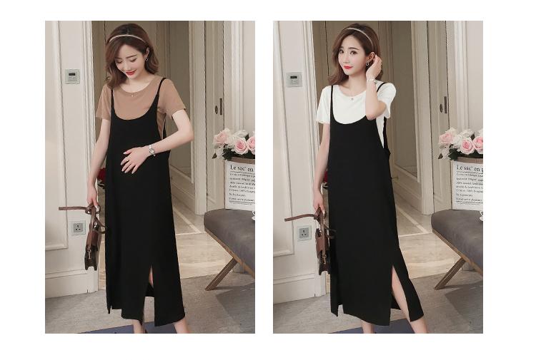 Ropa de maternidad 2022 verano nueva falda con tirantes divididos + camiseta de dos piezas suelta de talla grande vestido de mujer embarazada