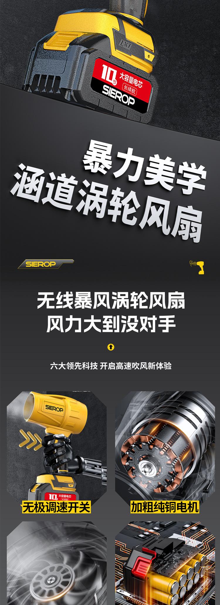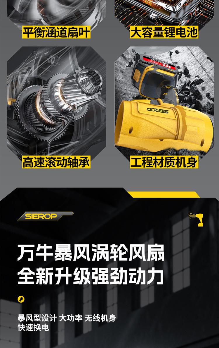 Ventilador Violento Brushless con Batería de Litio Soplador de Polvo Industrial Ventilador Turbina Tormenta Alta Potencia Hogar Lavado de Autos Soplador Soplador