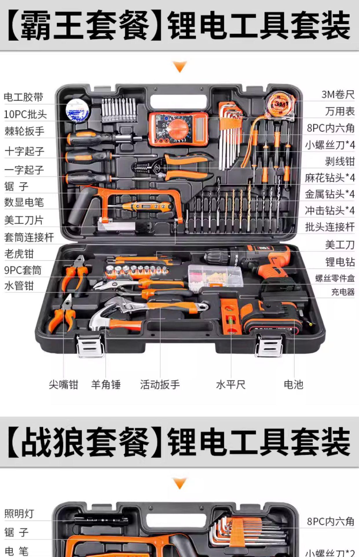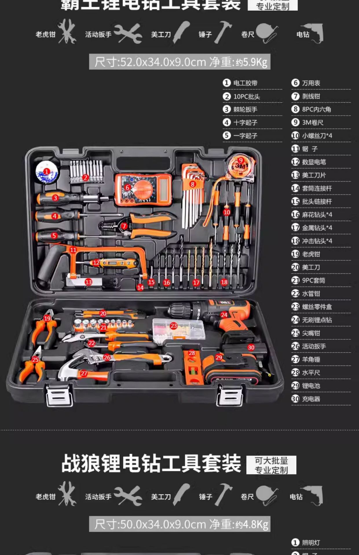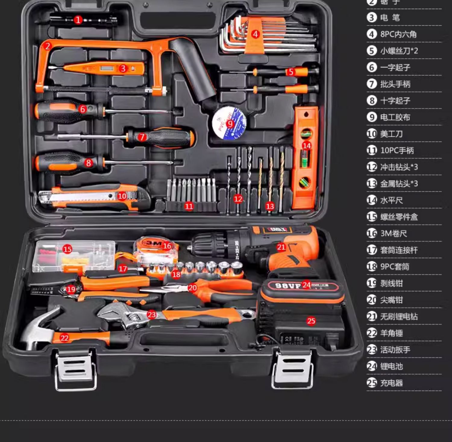 Caja de herramientas para el hogar, multifuncional, para ferretería, electricista, mantenimiento, combinación, herramienta completa, vehículo, taladro eléctrico, juego completo