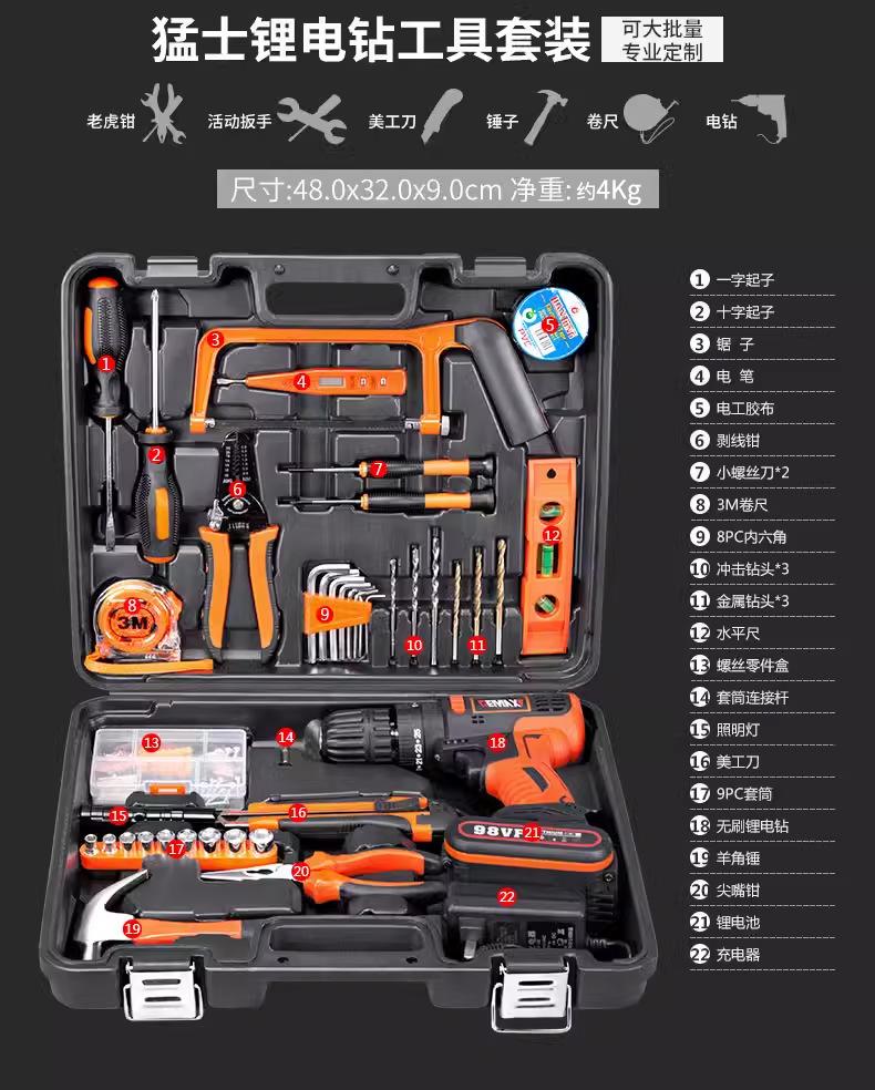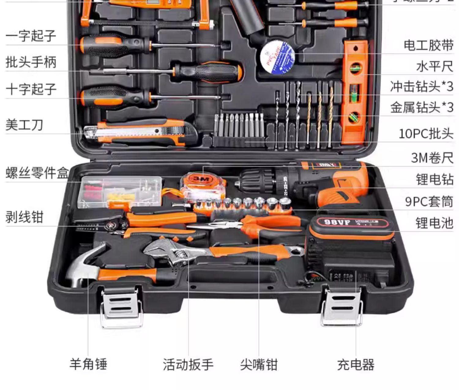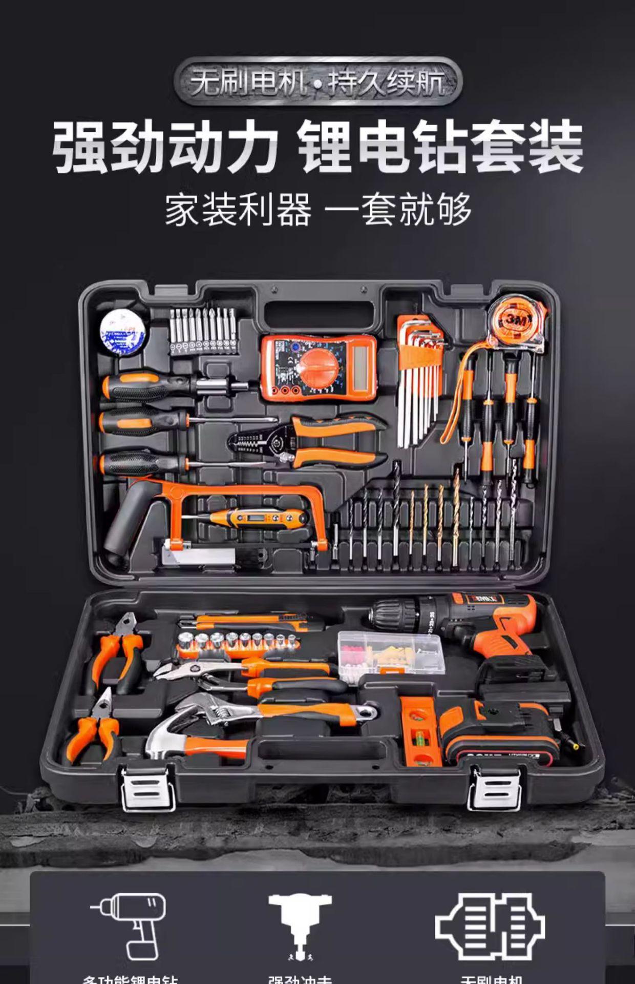 Caja de herramientas para el hogar, multifuncional, para ferretería, electricista, mantenimiento, combinación, herramienta completa, vehículo, taladro eléctrico, juego completo