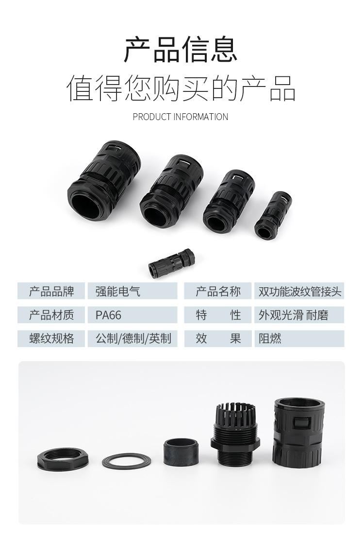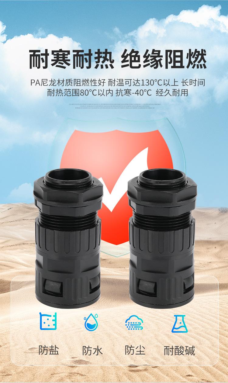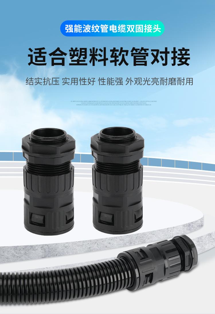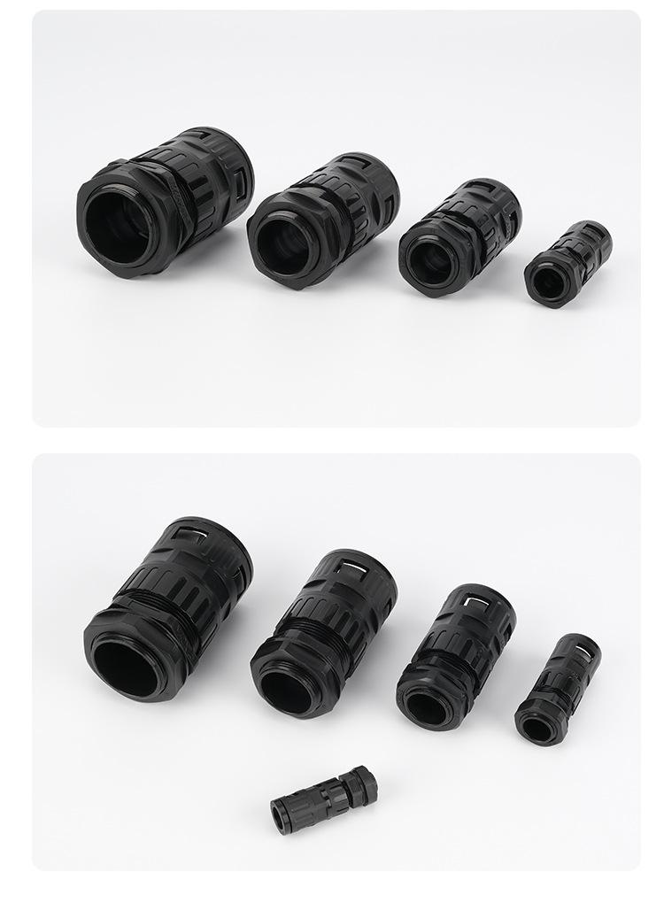 Conector Impermeable para Cable de Tubo Corrugado de Doble Bloqueo Nylon PA Doble Prensaestopa Fijo Rápido en Línea Rosca Interna Ge