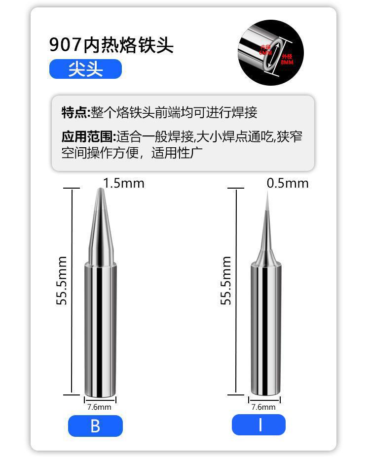 Punta de soldador 907 de fábrica directa para soldadura de mantenimiento con calentamiento interno sin plomo temperatura constante soldador eléctrico cabezal de corte de soldador