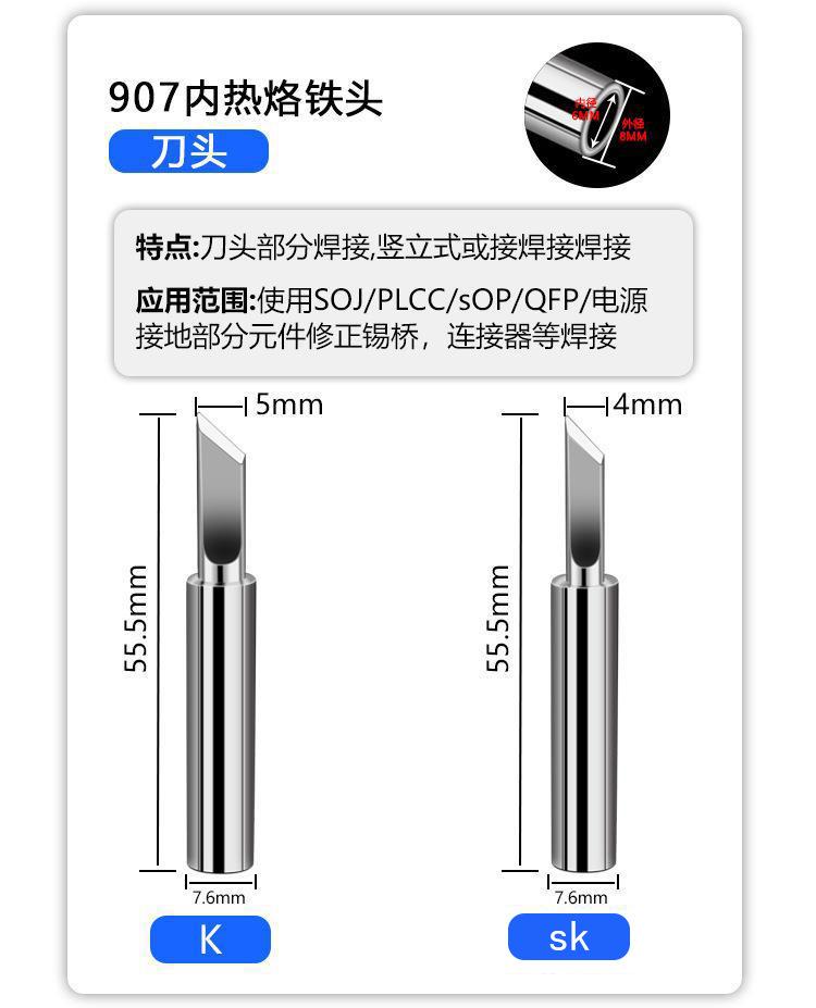 907-i special tip, 907- is curved tip, 907-b round tip, 907-k large blade tip, 907-sk small knife tip, 907-1.6...