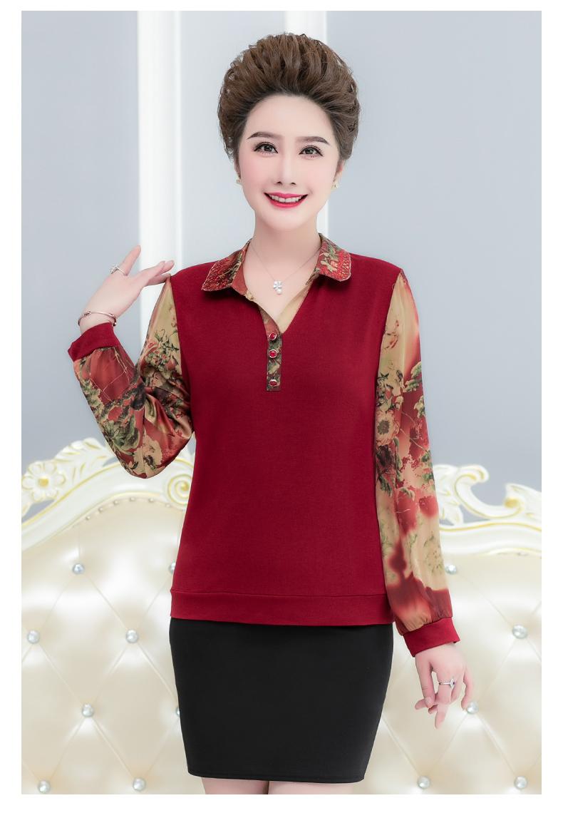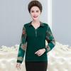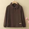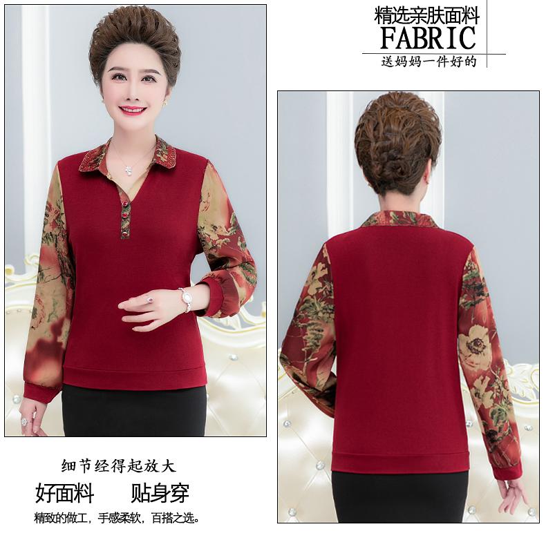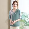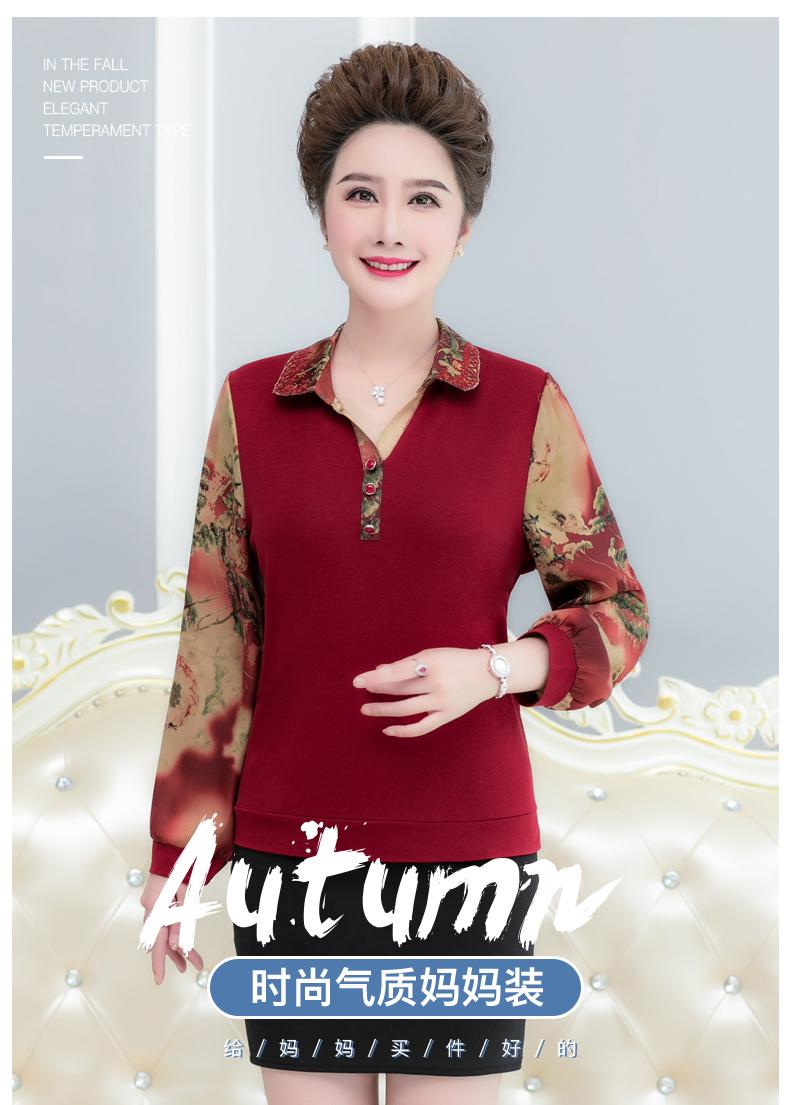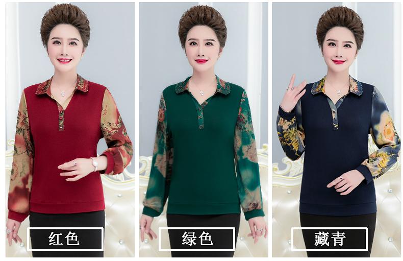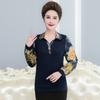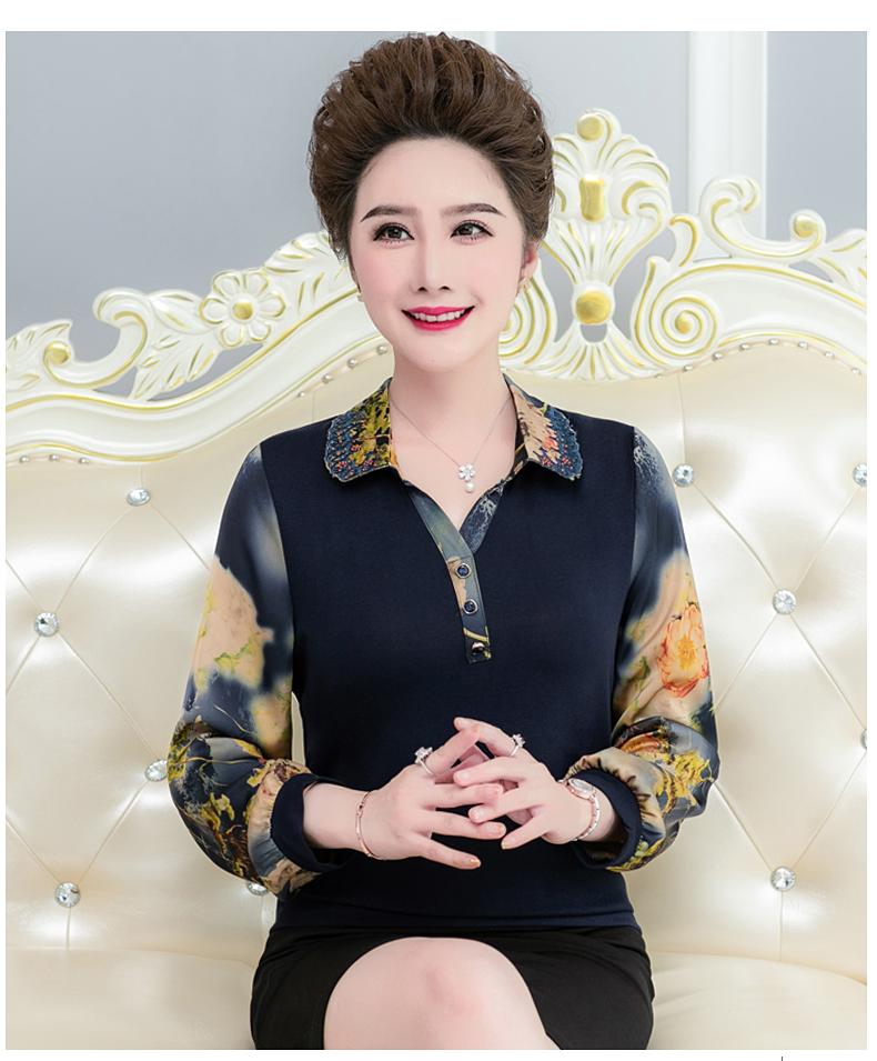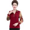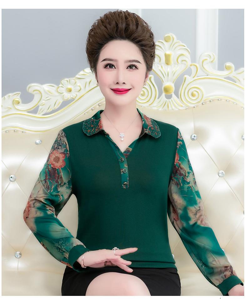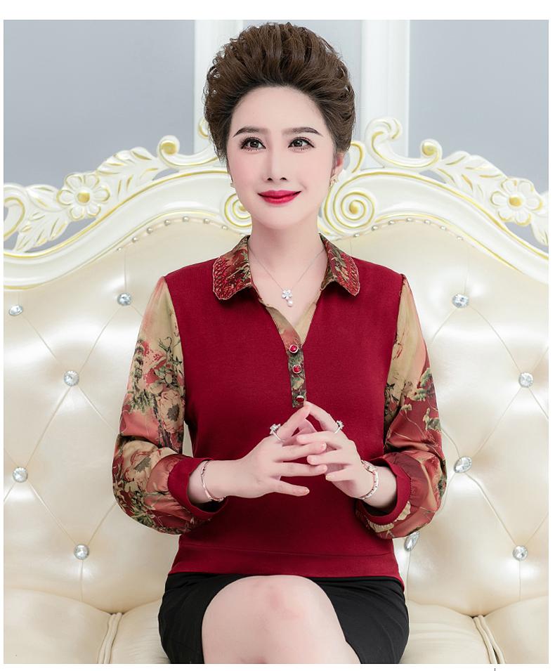 Camisa de punto con solapa estilo occidental de primavera y otoño para madres, camiseta corta para mujeres de mediana edad, de gasa de manga larga para otoño y de mediana edad.