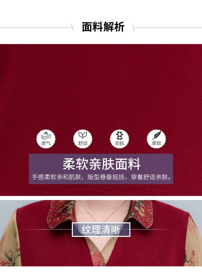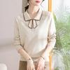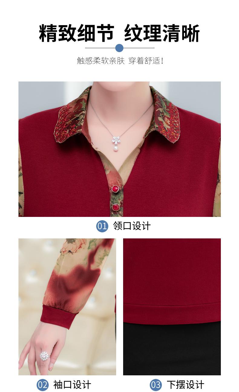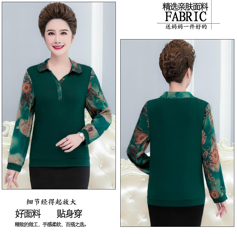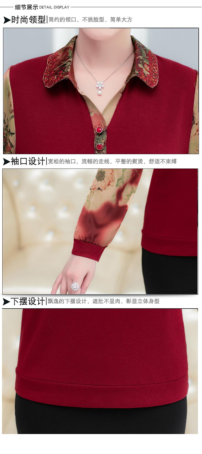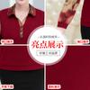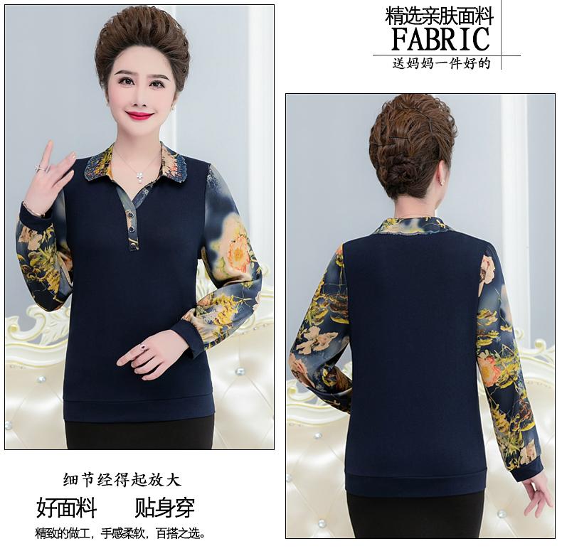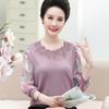 Camisa de punto con solapa estilo occidental de primavera y otoño para madres, camiseta corta para mujeres de mediana edad, de gasa de manga larga para otoño y de mediana edad.