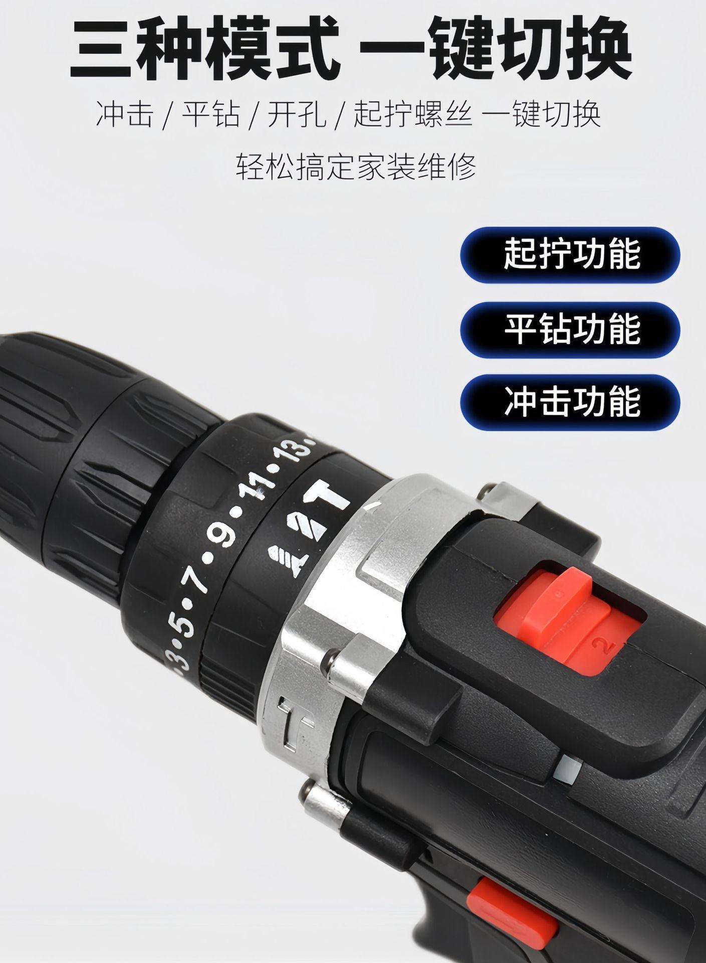 Taladro eléctrico de impacto de litio recargable multifuncional, destornillador eléctrico de grado industrial para el hogar, adecuado para taladro eléctrico manual, herramienta eléctrica