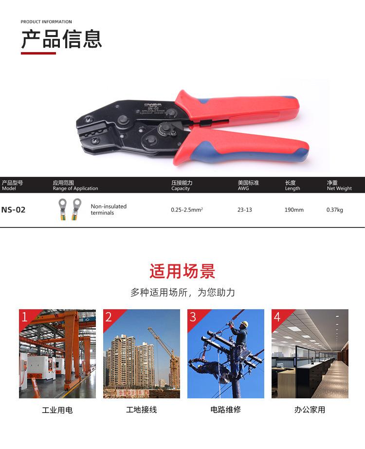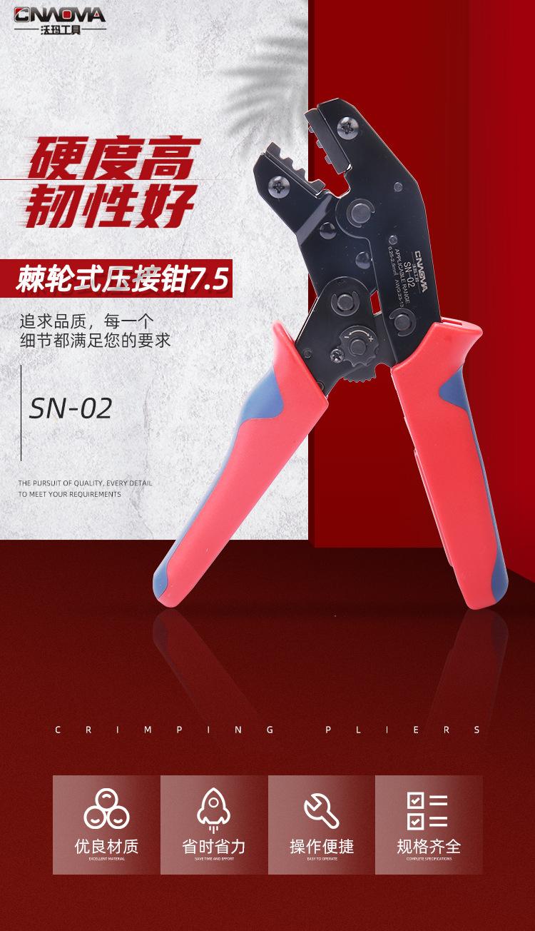 Alicates de crimpado, alicates de terminales, alicates de crimpado de trinquete SN-02, alicates de terminales, abrazadera de alambre de prensado en frío multifuncional