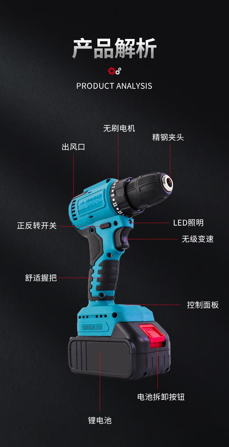 Taladro eléctrico de mano doméstico, taladro eléctrico de litio de alta potencia, multifuncional, carga sin escobillas, suministro al por mayor