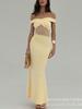 2025 Nuevo Europeo y Americano Transfronterizo Pura Lujuria Sexy Gasa Empalmada Color Puro Vestido de un Hombro sin Espalda Falda Larga para Mujer