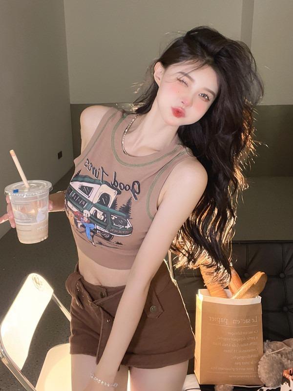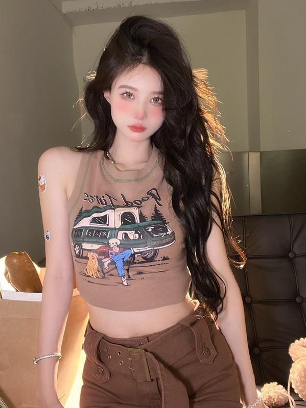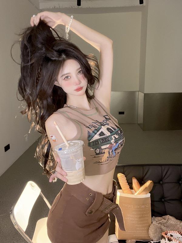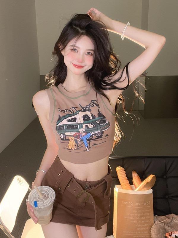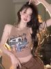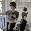 Camisola de diseño retro para mujer, de verano, con estampado de letras, corta, sexy, para chica, con ombligo, para comercio exterior
