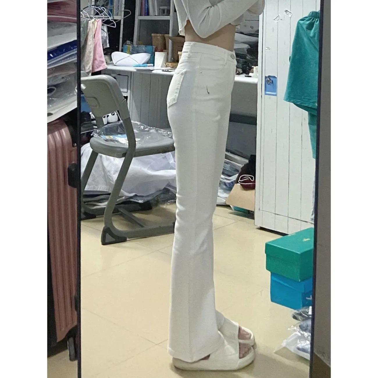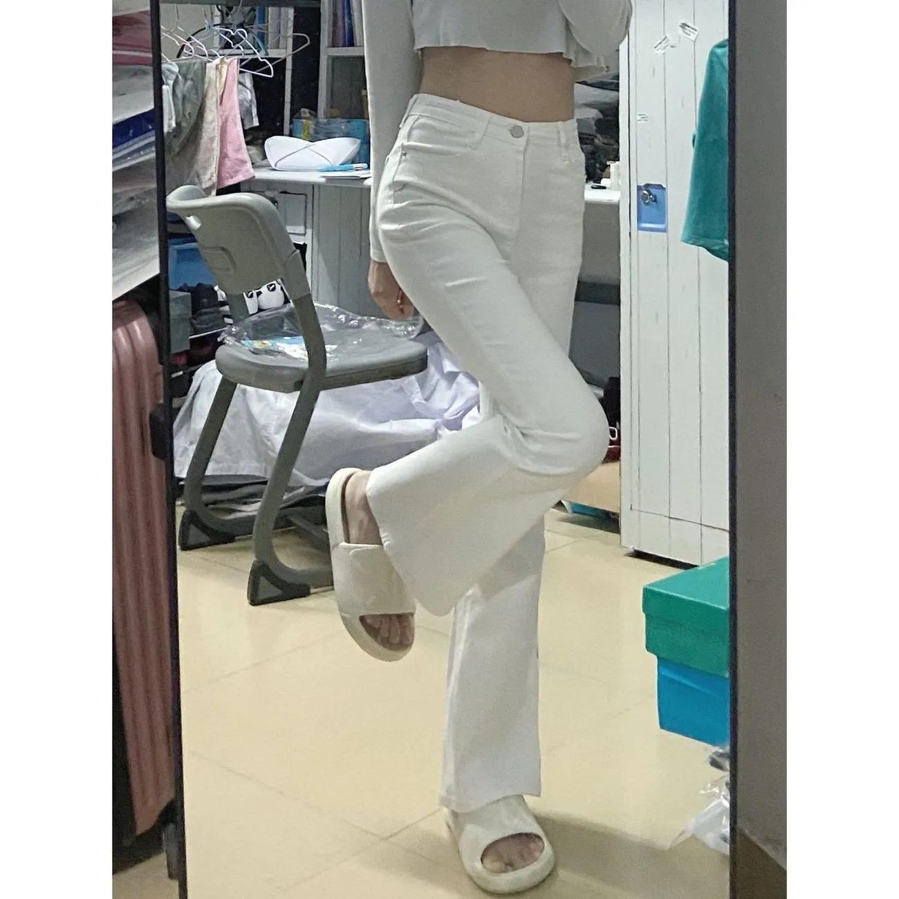 Pantalones vaqueros blancos micro acampanados para mujer, primavera y verano, nuevos, de cintura alta, ajustados, adelgazantes, con diseño de herradura.