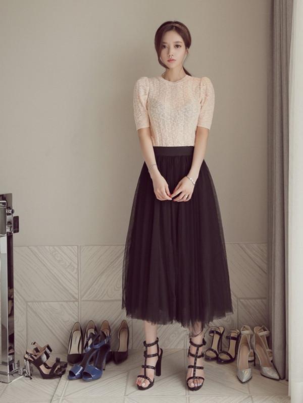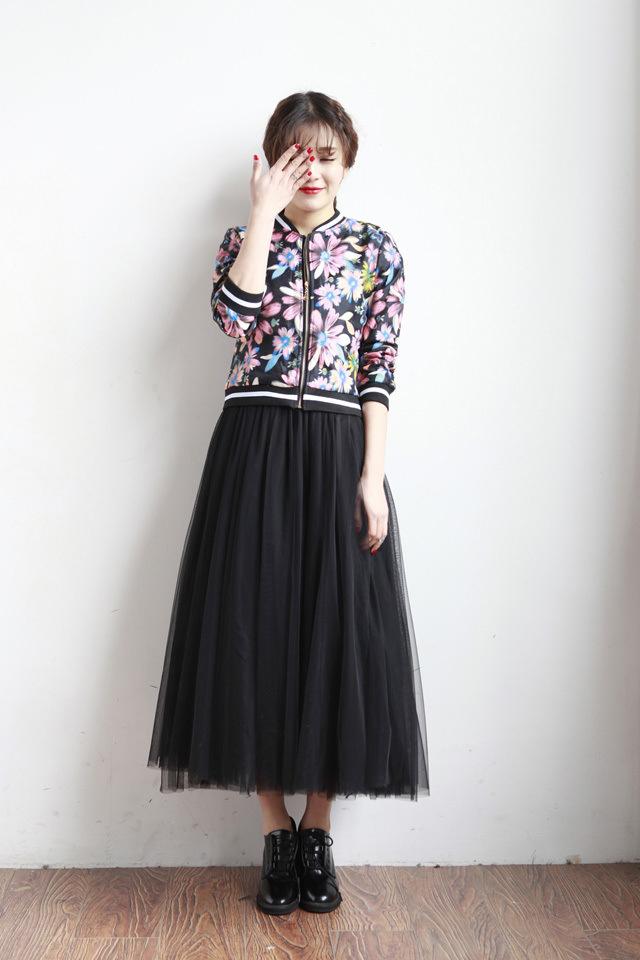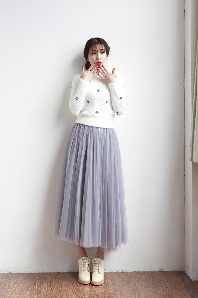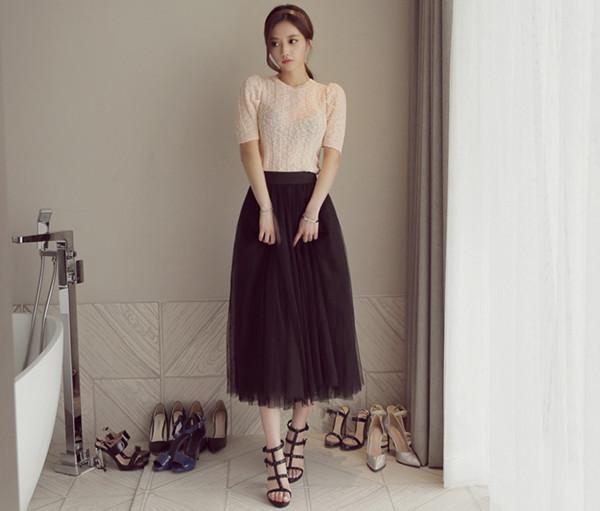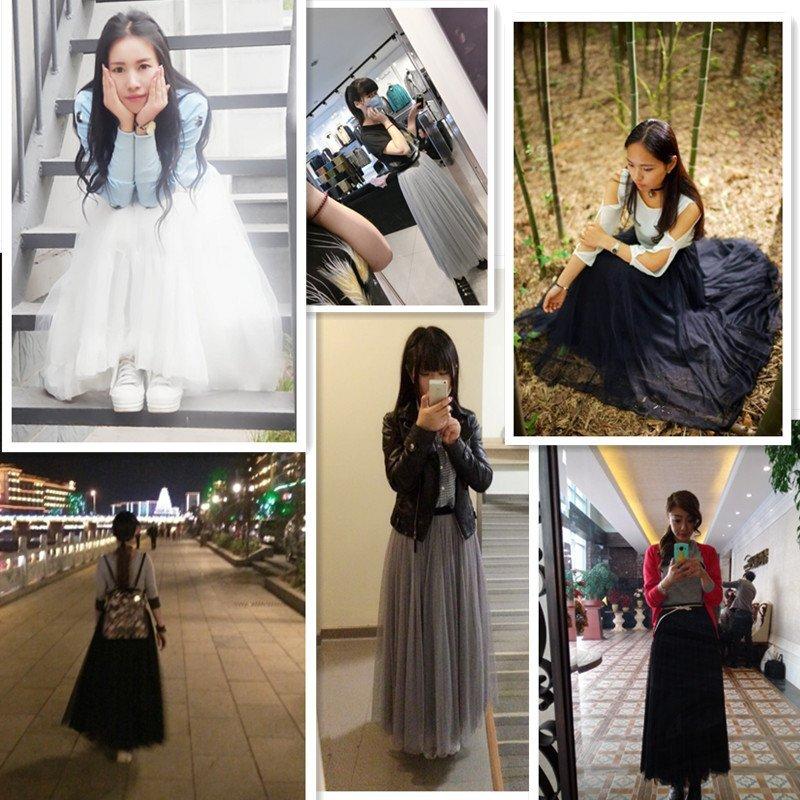 Falda de Malla de Tres Capas para Primavera y Otoño Falda Abullonada Falda Larga Falda Falda de Princesa Falda con Vuelo Grande Falda Midi a Juego