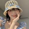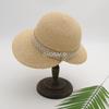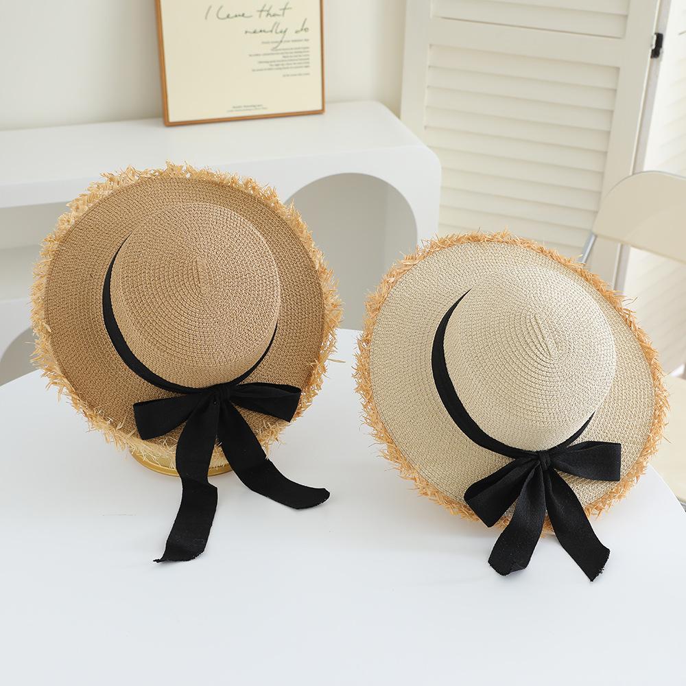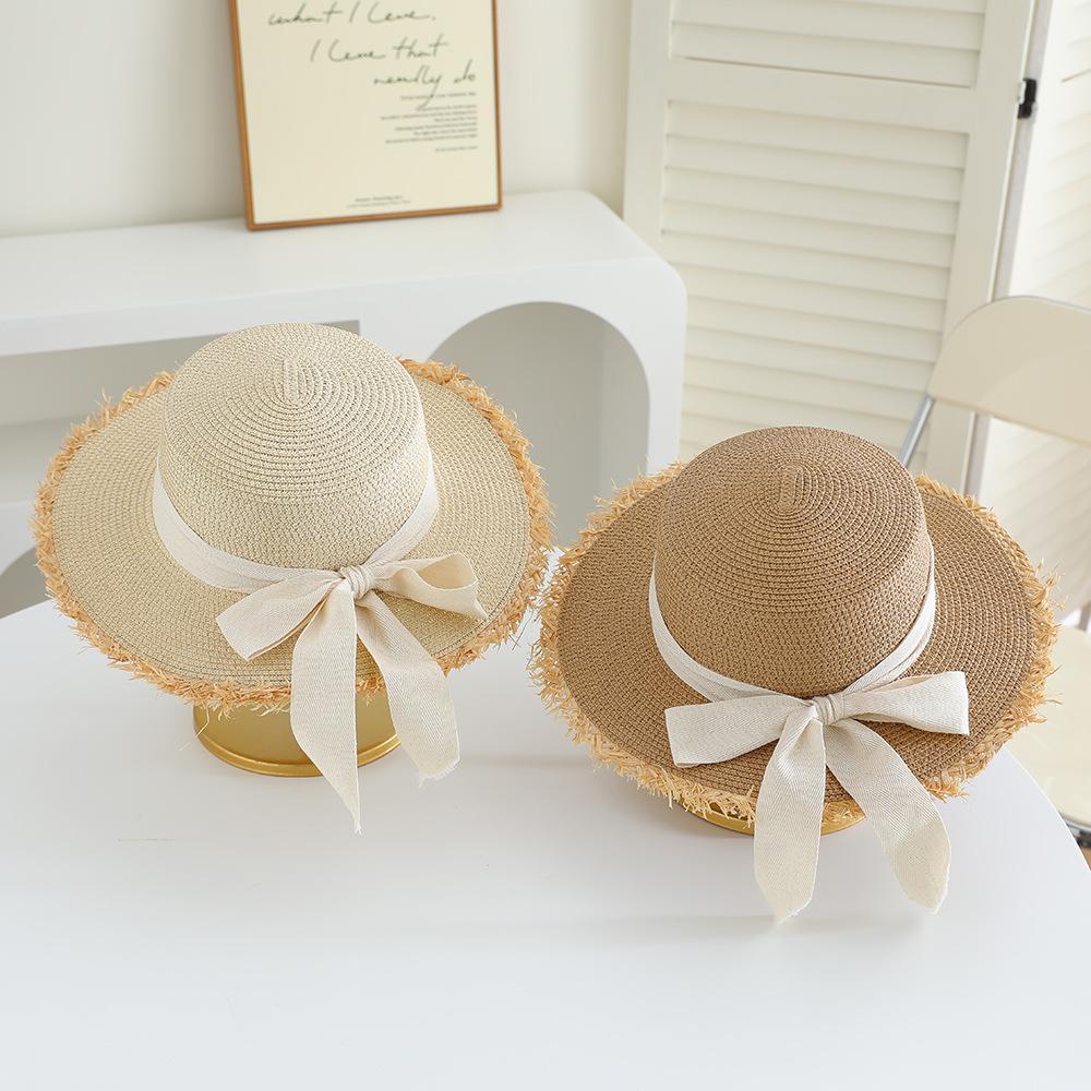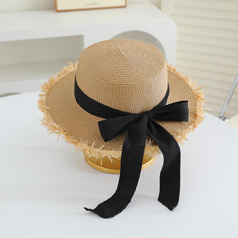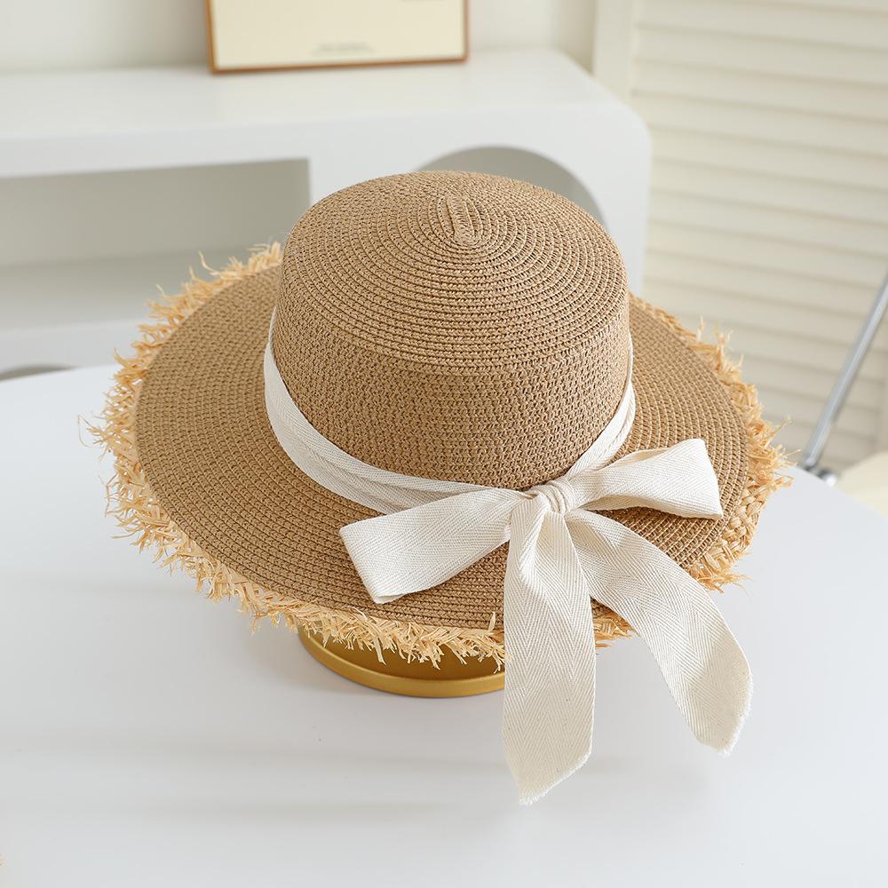 Sombrero Primavera y Verano Moda Mujer Sombrero de Paja Sombrero de Playa para Vacaciones Marítimas Sombrero de Sol de Rafia con Copa Plana y Lazo de Cinta
