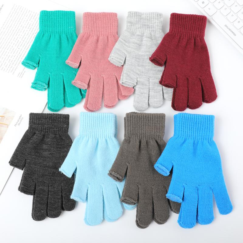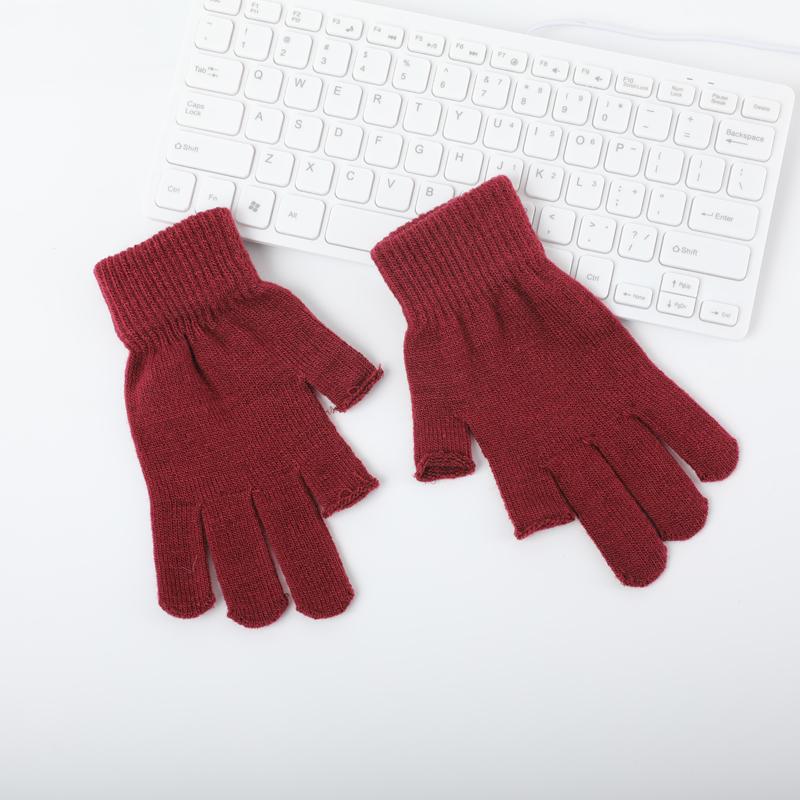 Guantes de dos dedos de punto de lana fina para otoño e invierno