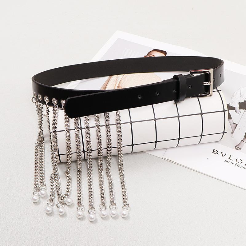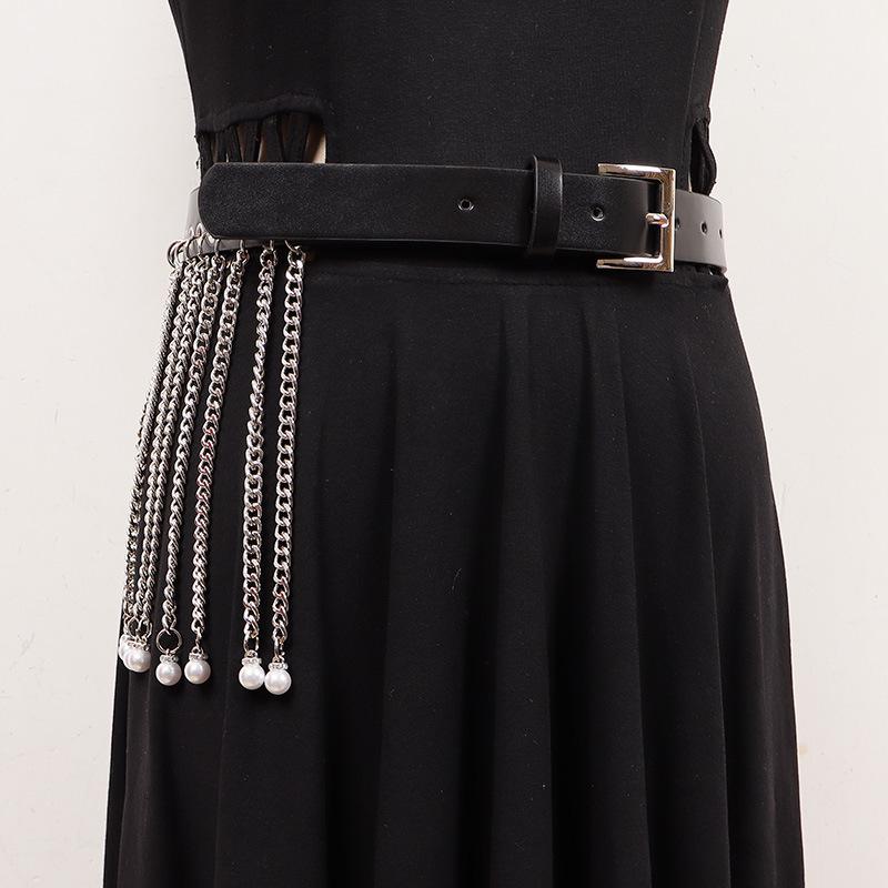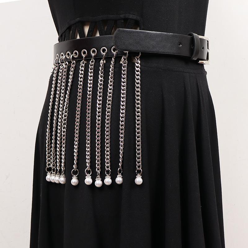 Cinturón de Cadena de Celebridad de Internet Europeo y Americano Cadena Cinturón Hip Hop Oscuro Falda Jk Cadena Cinturón de Nicho Cadena de Cintura Juventud Versátil Moderno Negro
