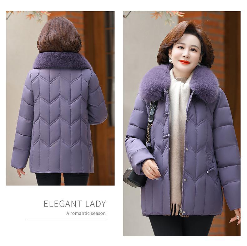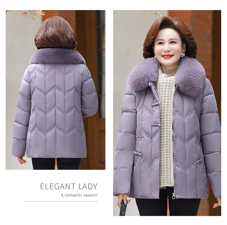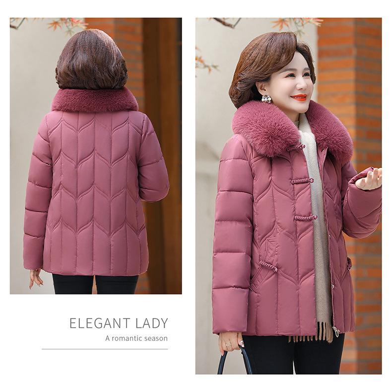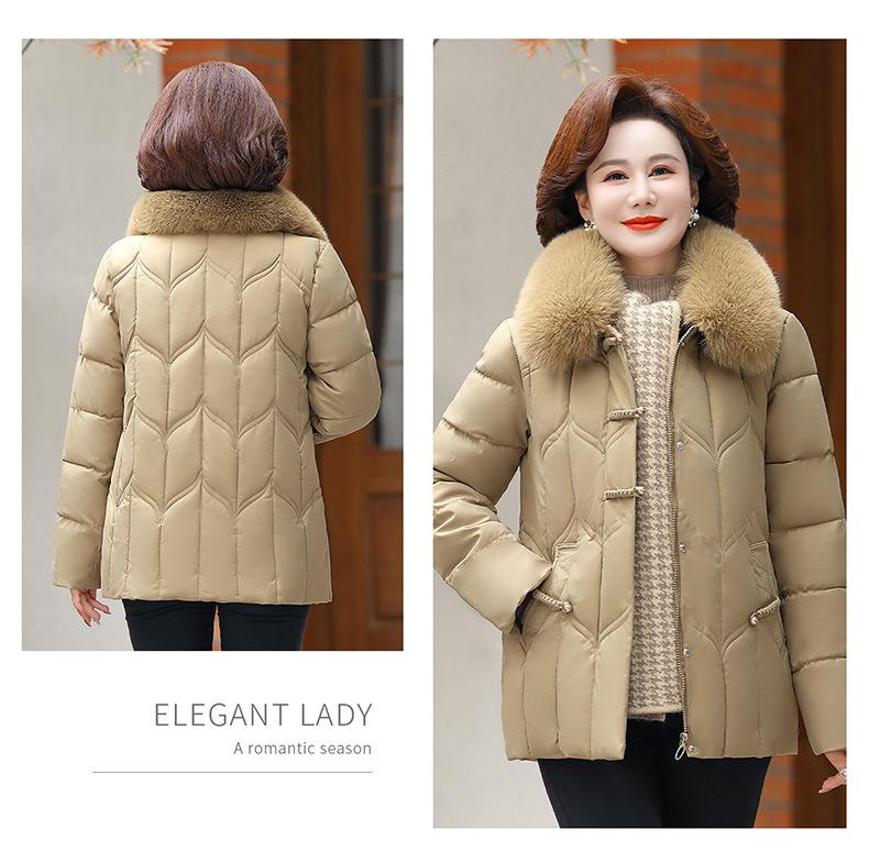 Ropa de invierno para madres de mediana edad, chaqueta acolchada de algodón con forro polar y plumón grueso, ropa para mujeres de mediana edad y mayores, chaqueta acolchada de algodón cálida con temperamento, abrigo estilo occidental