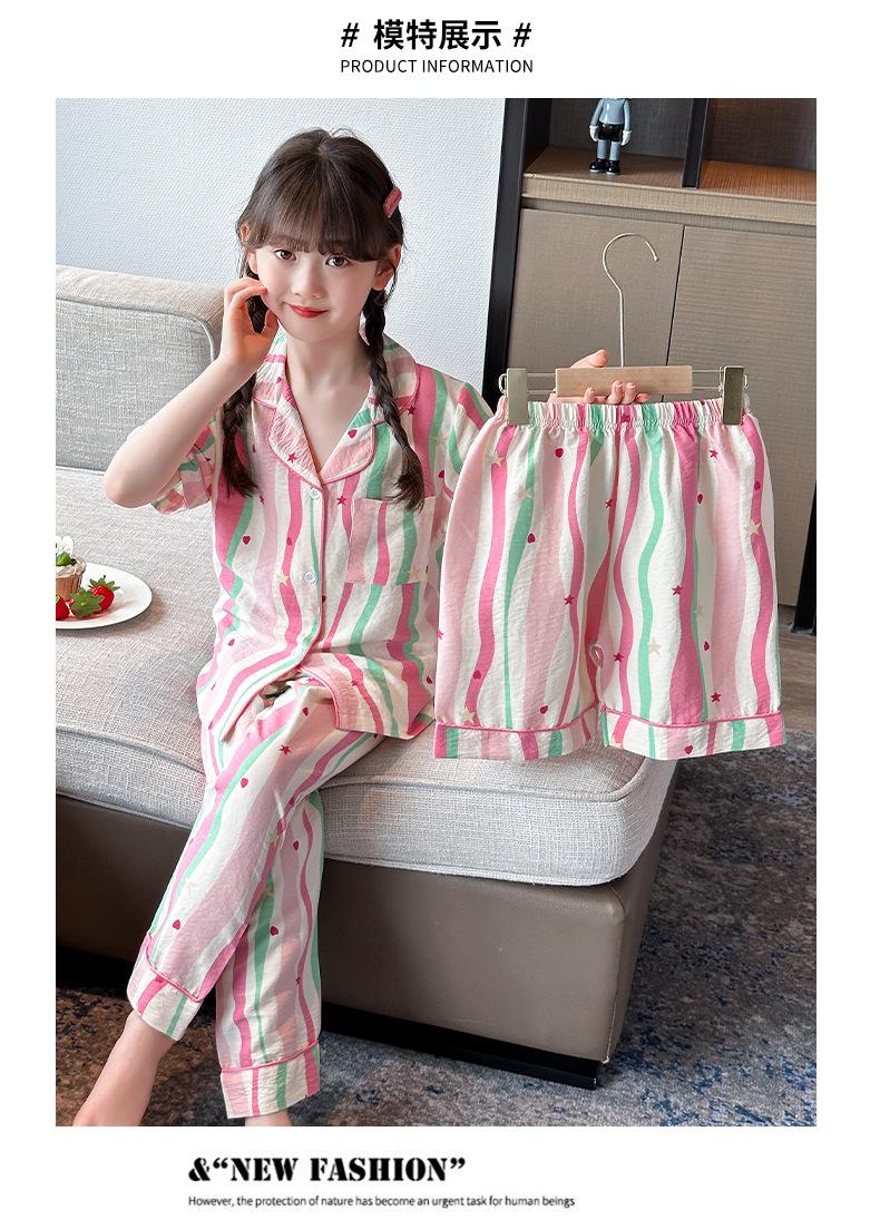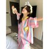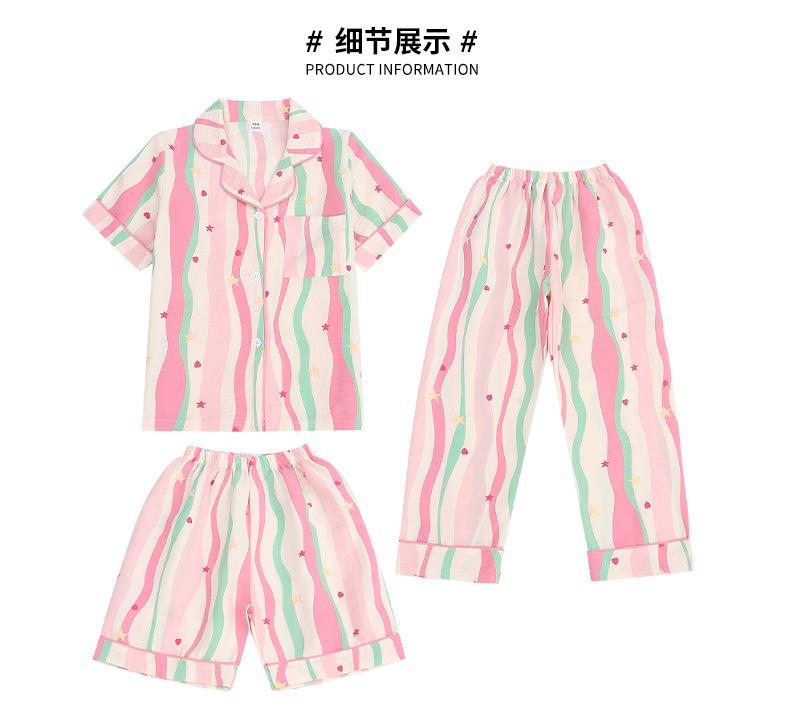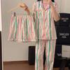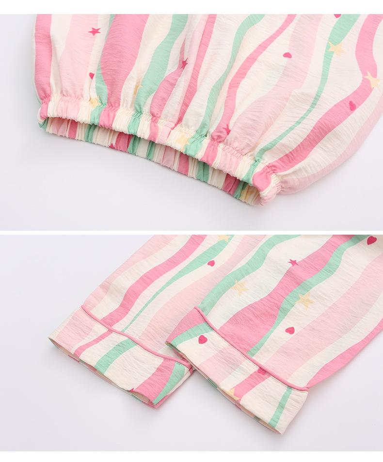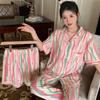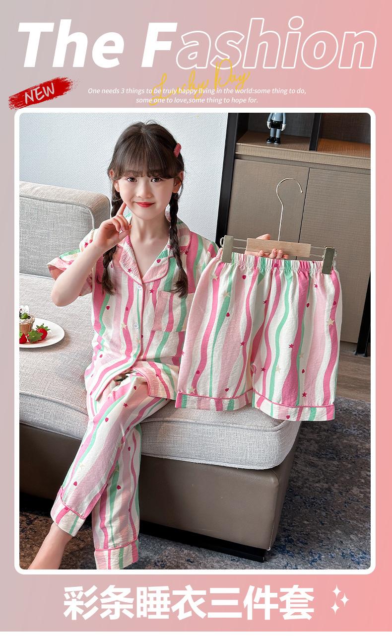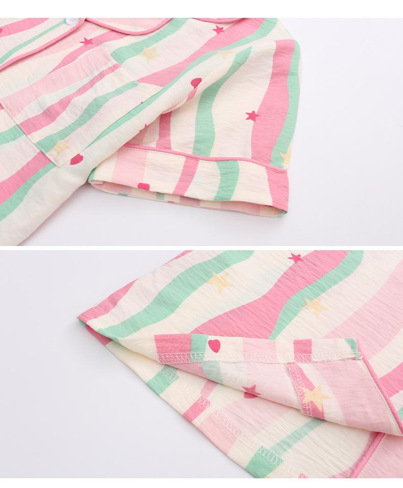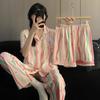 Pijama Dopamina Rosa Amor a Rayas para Mujer Verano Nuevo Manga Corta Delgado Tres Piezas Dulce Lindo Ropa de Casa