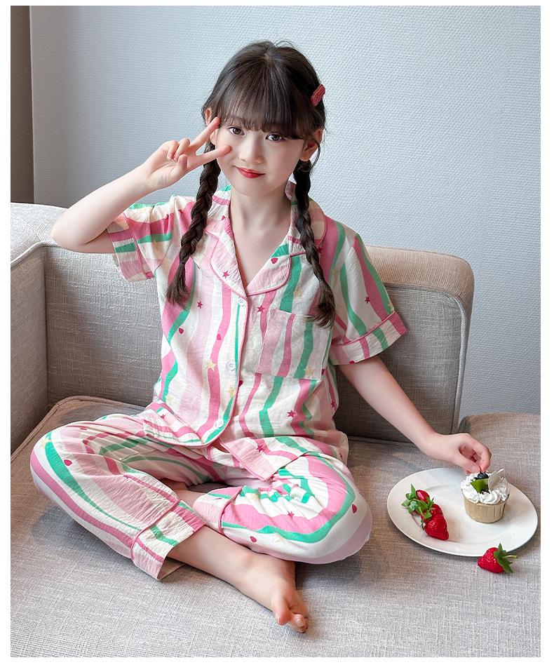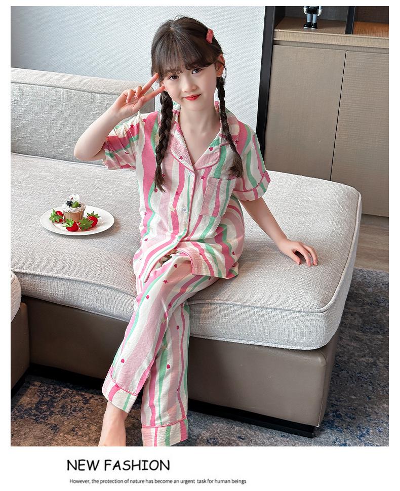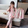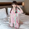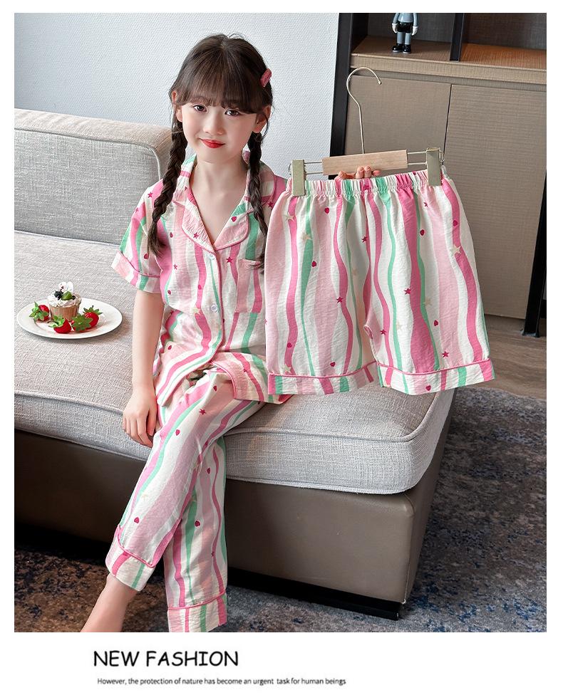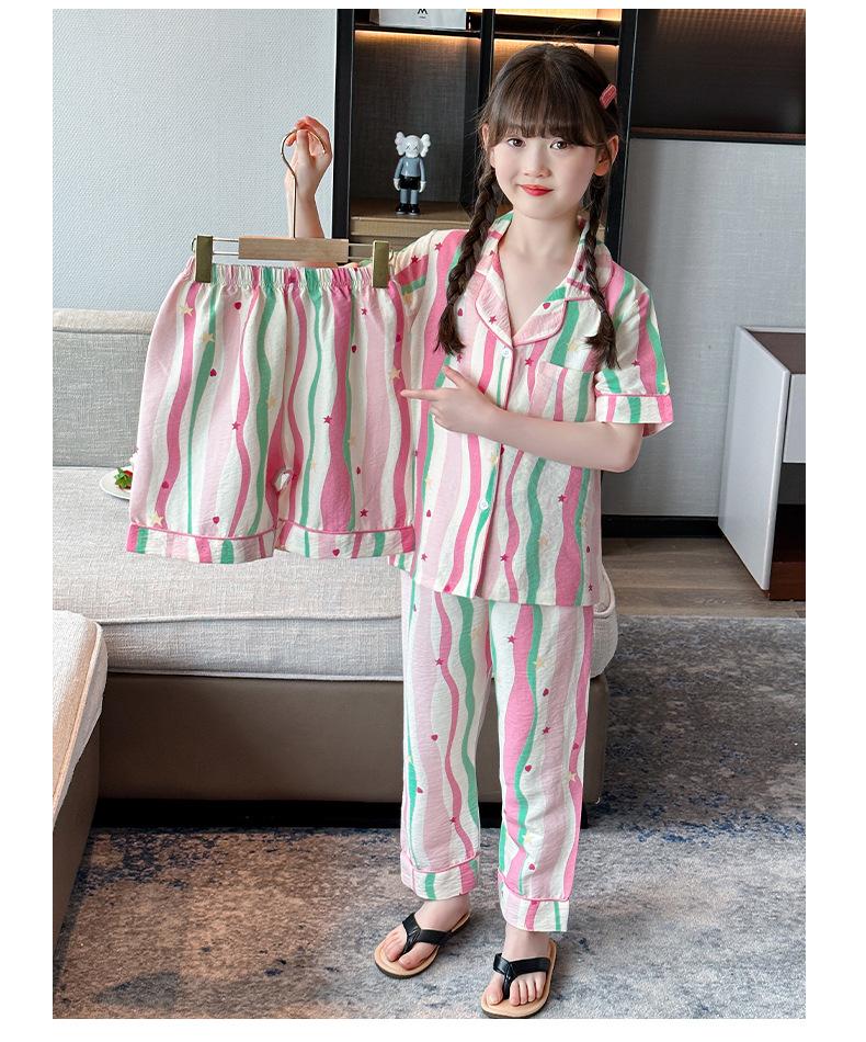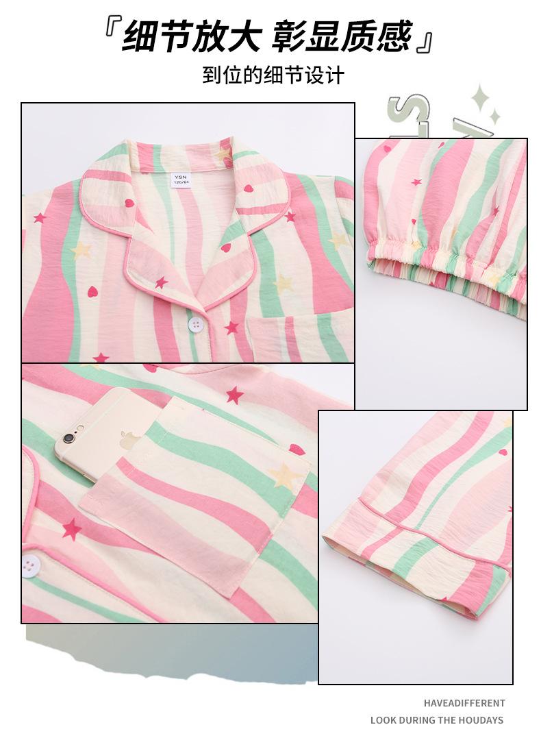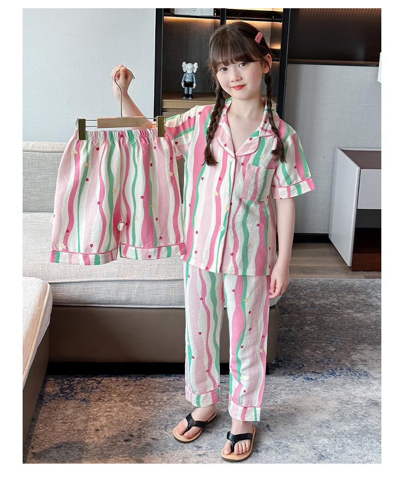 Pijama Dopamina Rosa Amor a Rayas para Mujer Verano Nuevo Manga Corta Delgado Tres Piezas Dulce Lindo Ropa de Casa