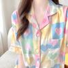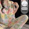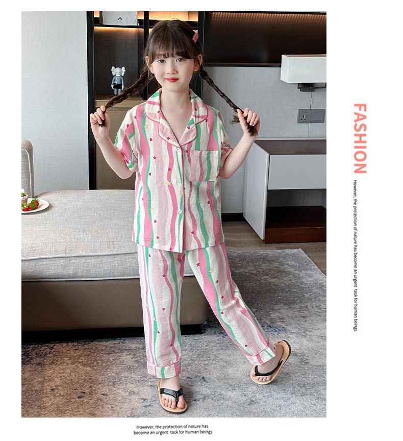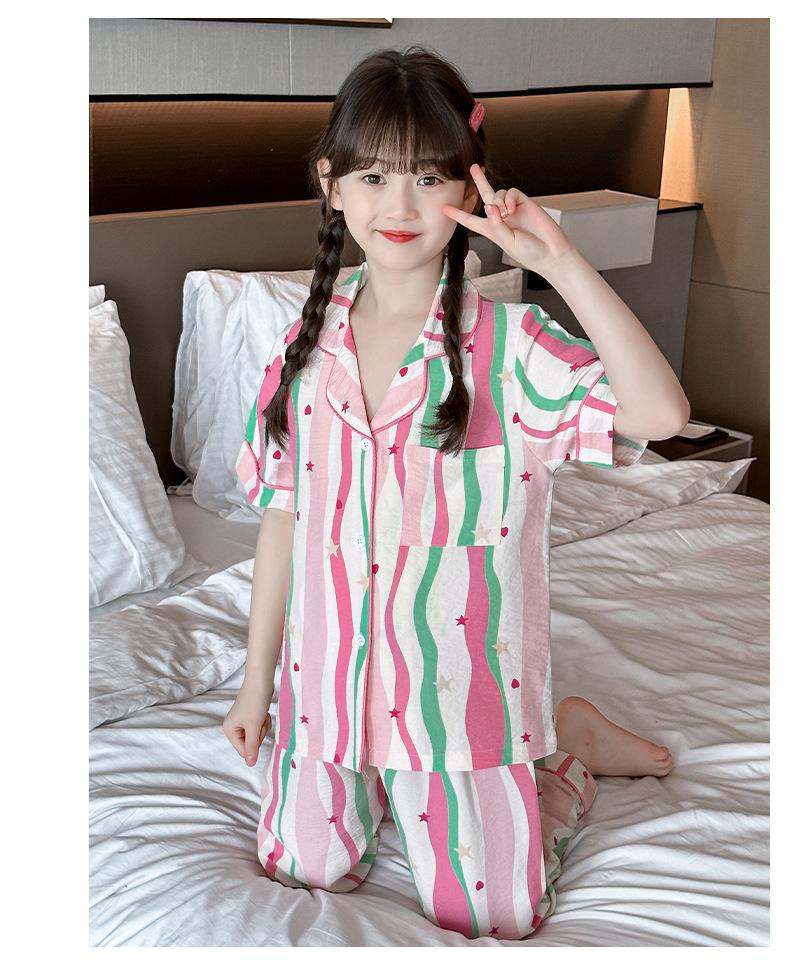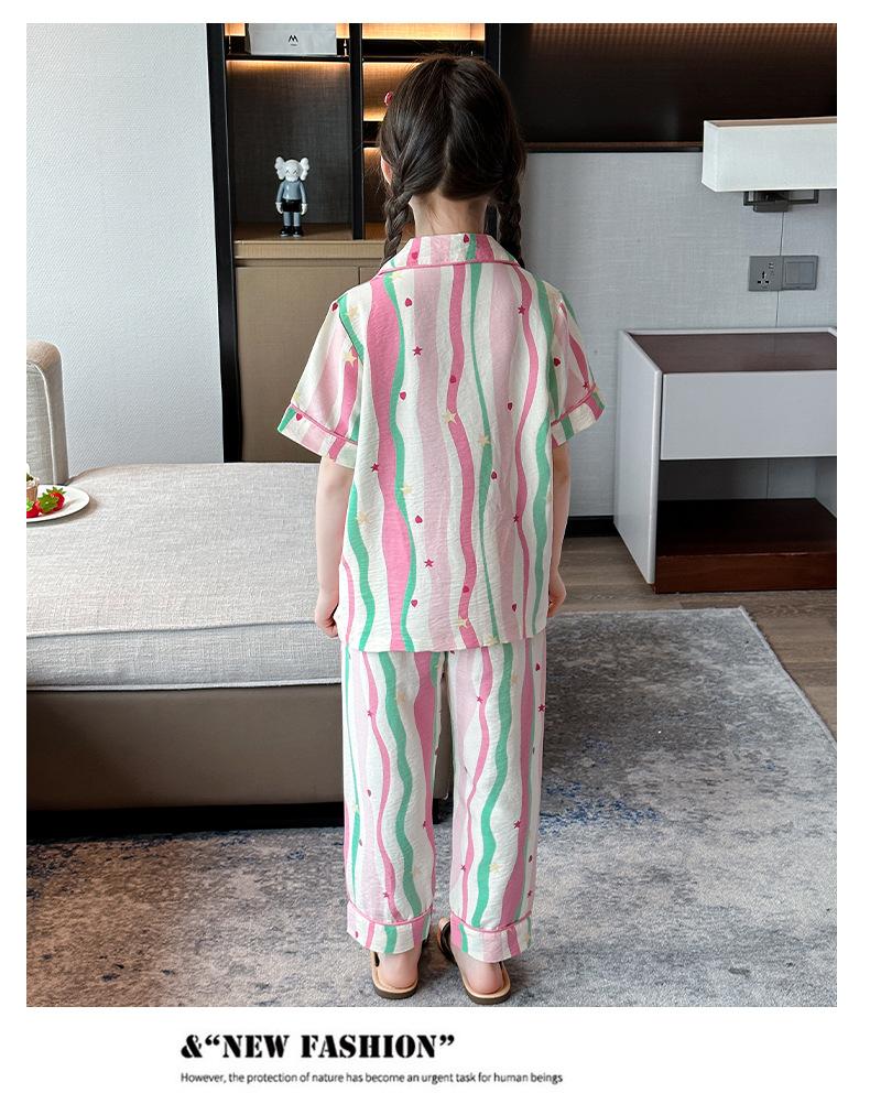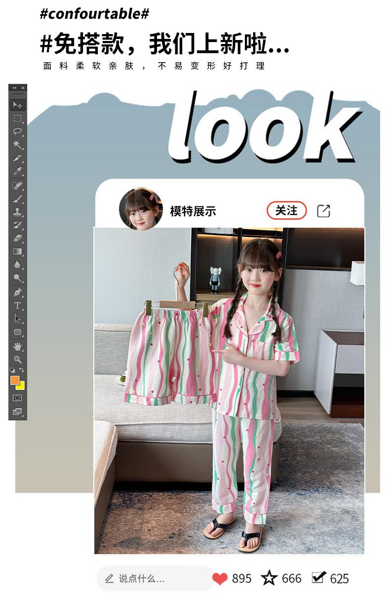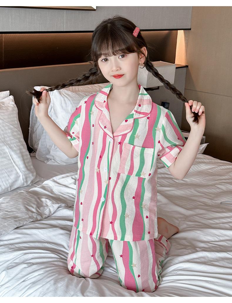 Pijama Dopamina Rosa Amor a Rayas para Mujer Verano Nuevo Manga Corta Delgado Tres Piezas Dulce Lindo Ropa de Casa