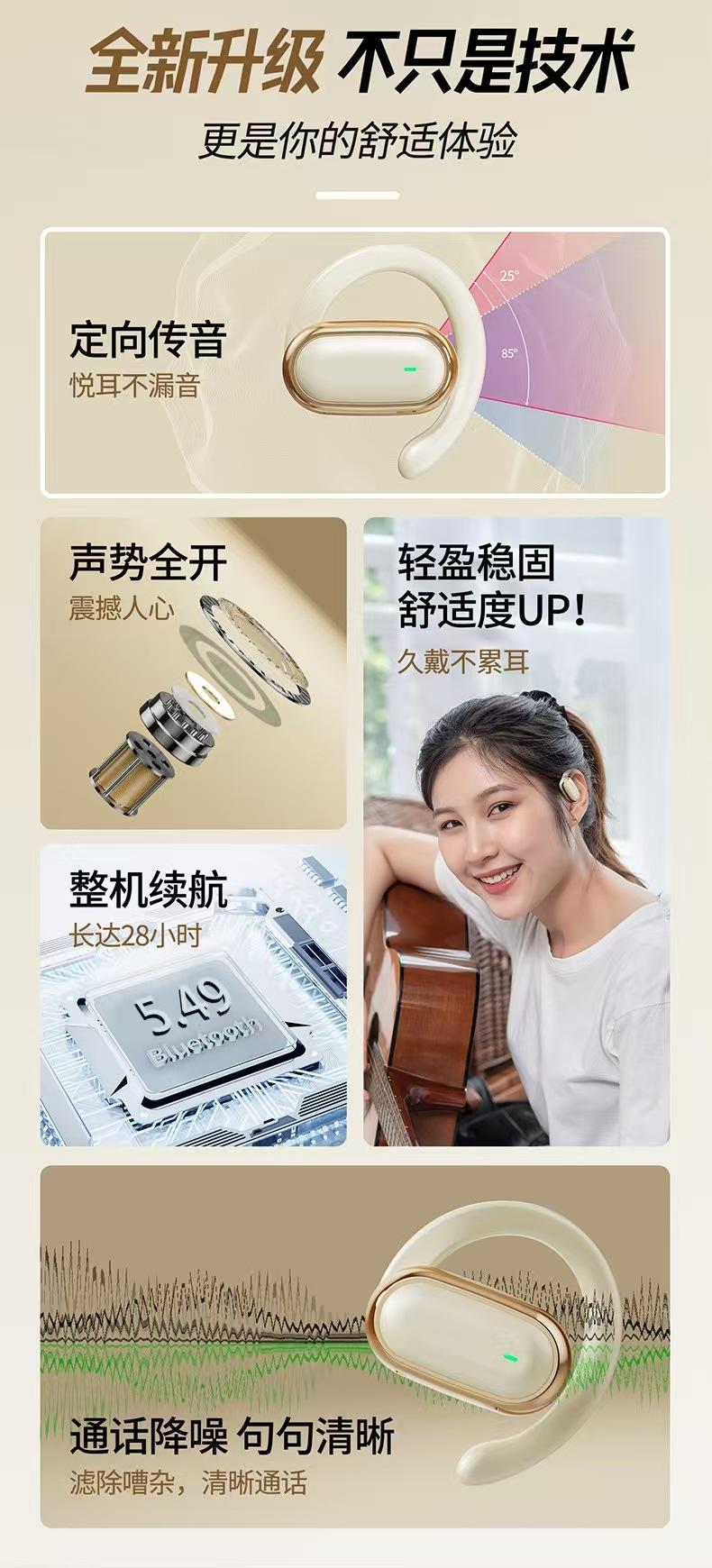 Los nuevos auriculares inalámbricos Bluetooth X96 no penetran en el oído, conducción ósea, tipo colgante para la oreja, deportivos, de uso prolongado, indoloros para hombres y mujeres.