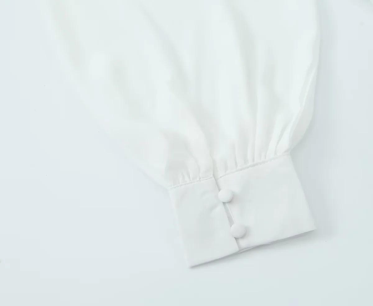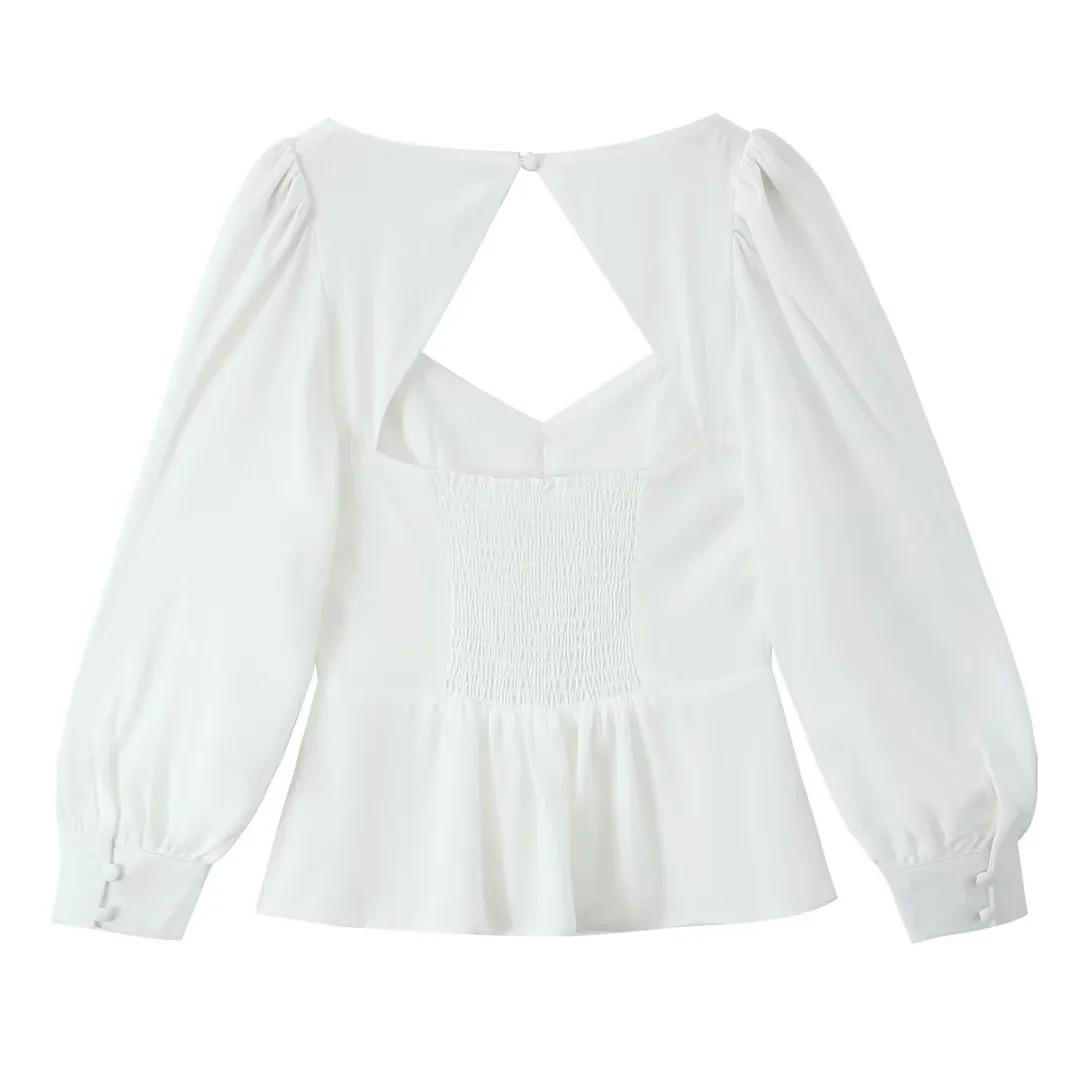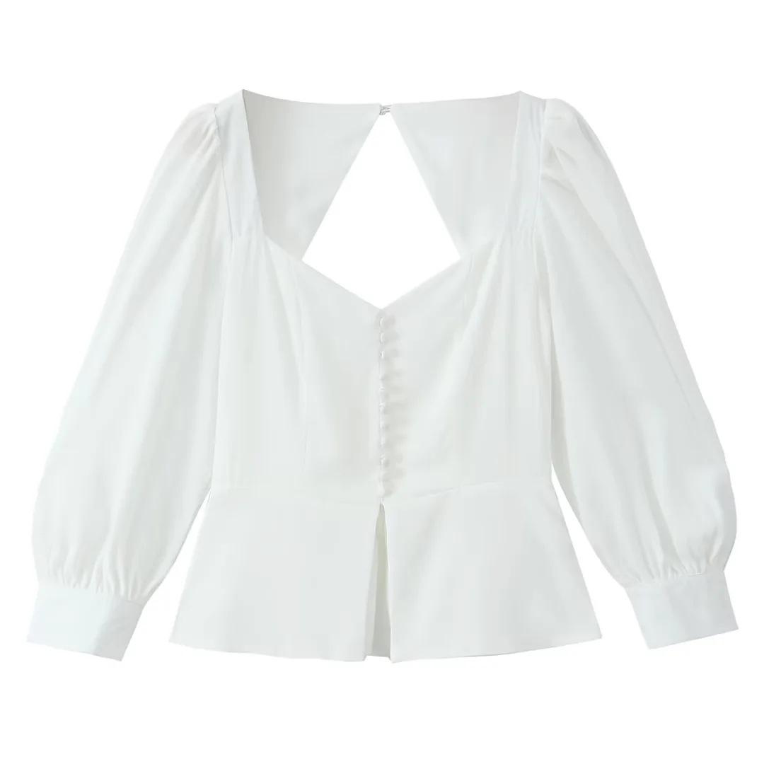 7616 Ropa de mujer transfronteriza europea y americana Otoño 2024 Nueva camisa de manga farol con botones delanteros y cuello de corazón