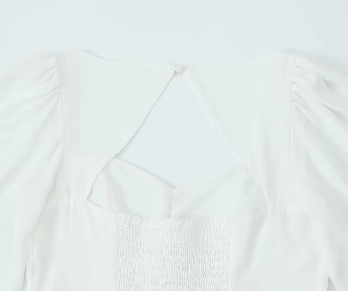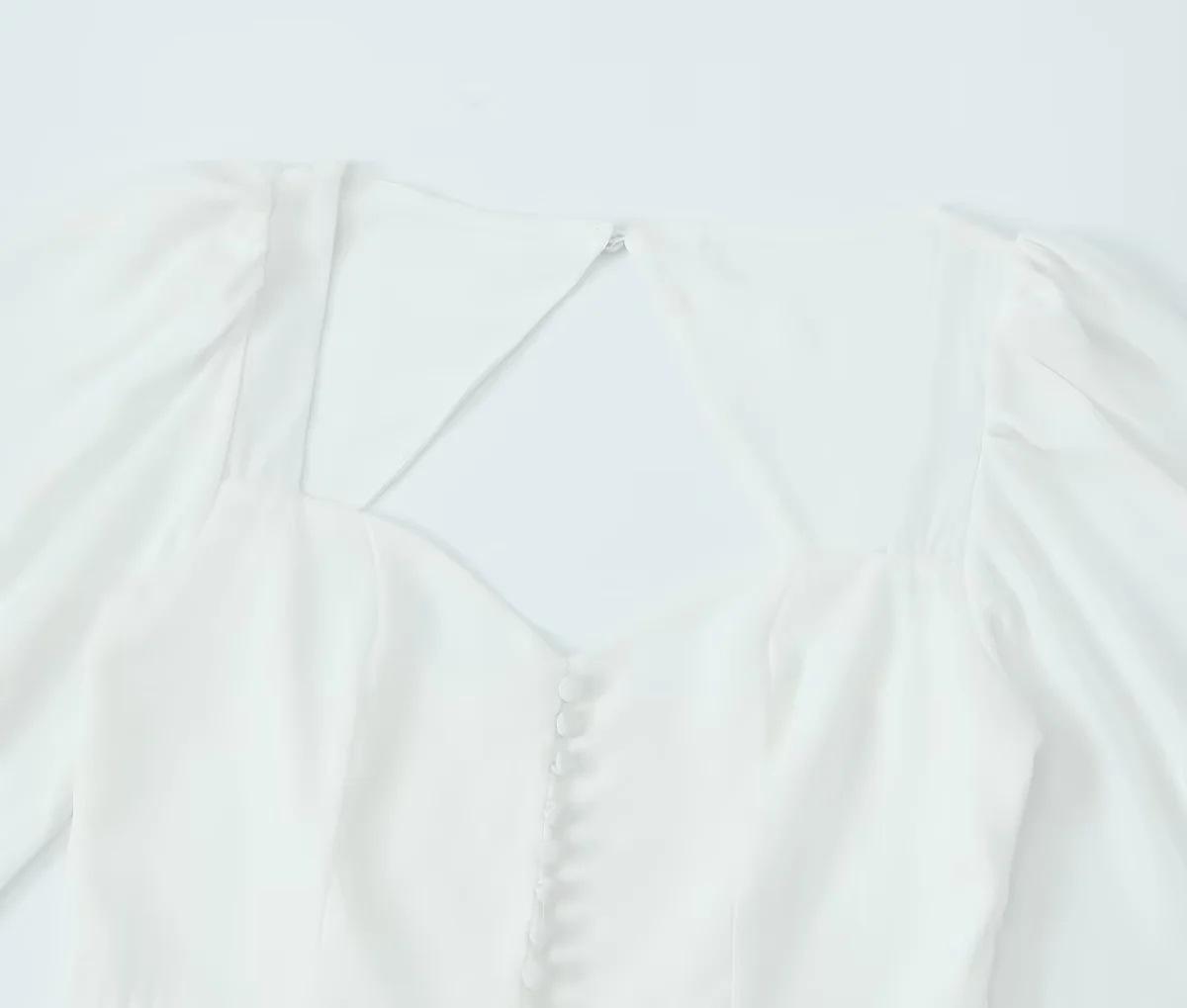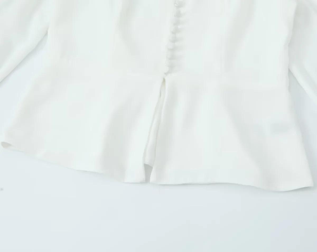 7616 Ropa de mujer transfronteriza europea y americana Otoño 2024 Nueva camisa de manga farol con botones delanteros y cuello de corazón