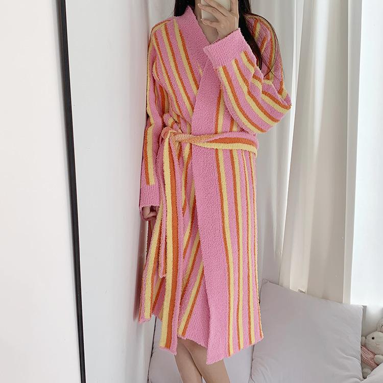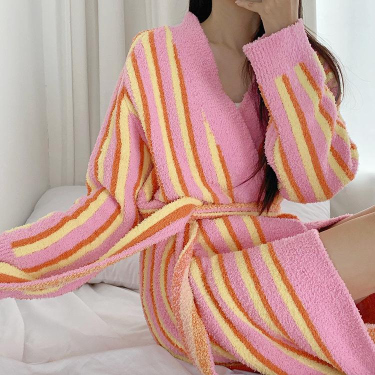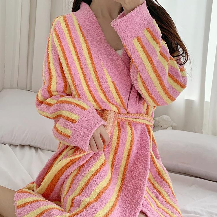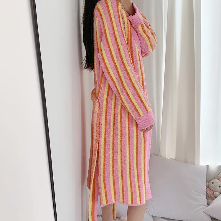 Camisón para Mujer Invierno Nuevo Otoño e Invierno Grueso con forro polar Bata Larga Vellón Coral Invierno Pijama Medio Terciopelo