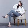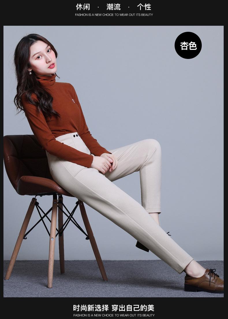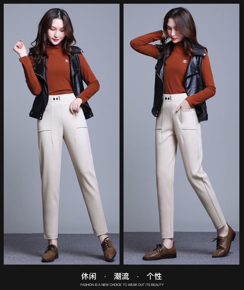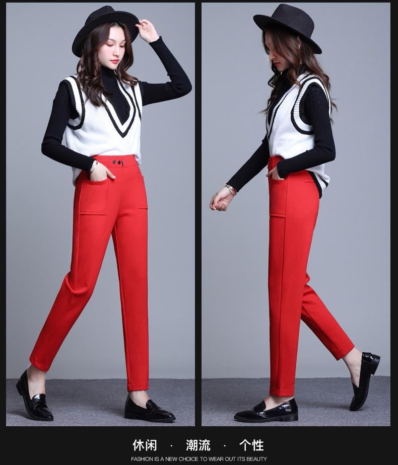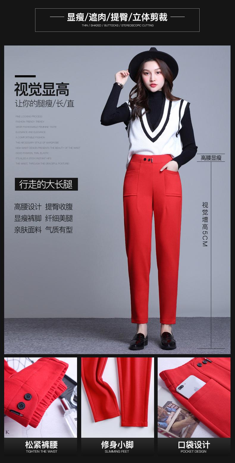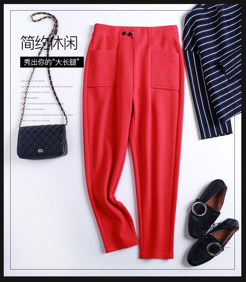 Pantalones Harlan de cintura elástica para mujer, recién llegados en primavera y otoño, ajustados, adelgazantes, de nueve piezas, de talla grande, de cintura alta, color rábano, 2023