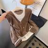 Suéter de punto de manga larga con contraste de colores, diseño de estilo coreano 2024, para mujer, otoño e invierno, suave, ceroso, cómodo y suelto.