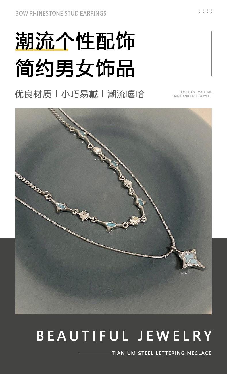 Collar Estrella de Cuatro Hombres para Hombre Acero de Titanio Moderno de Alta Calidad Sin Color Combinable Doble Capa Zircón Accesorios Simples Nueva Joyería para Mujer
