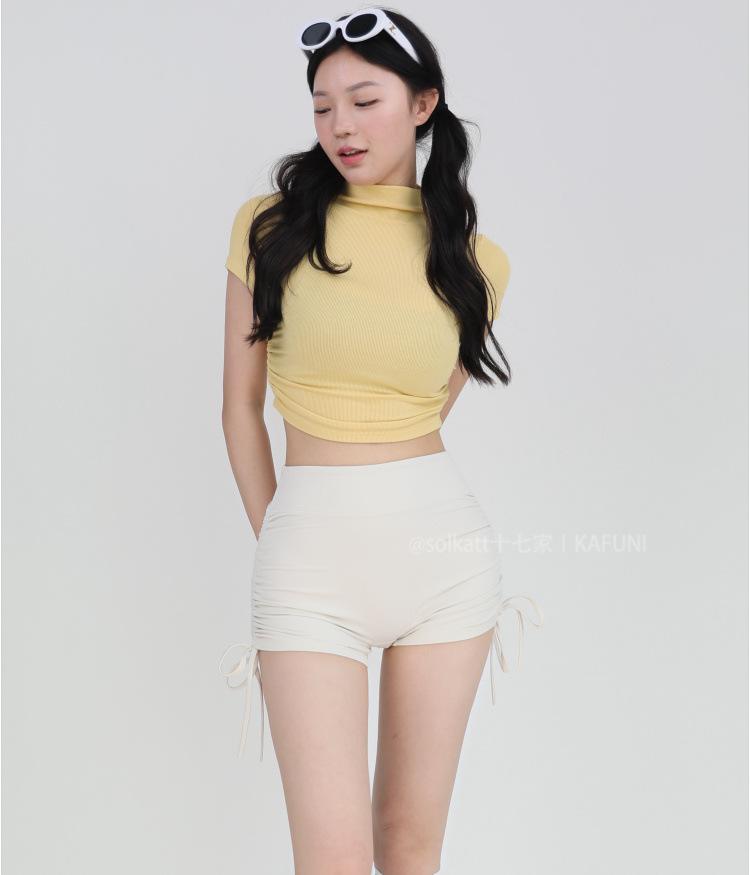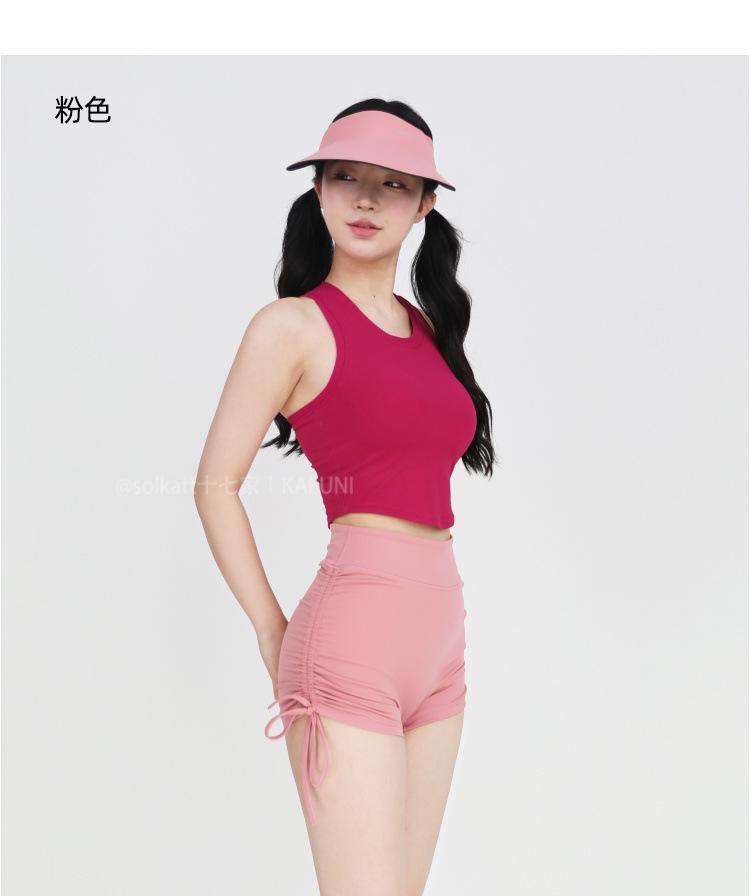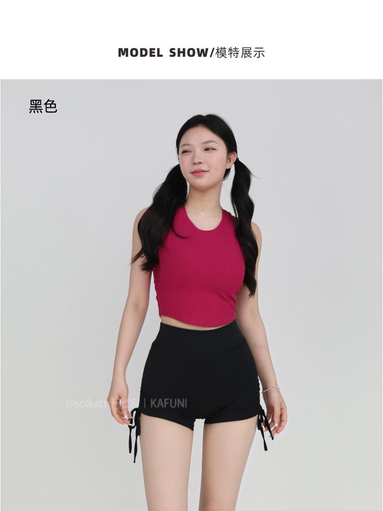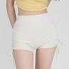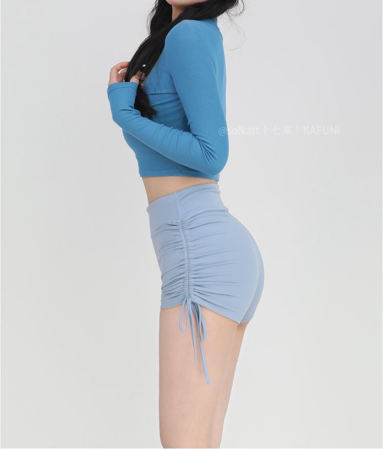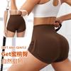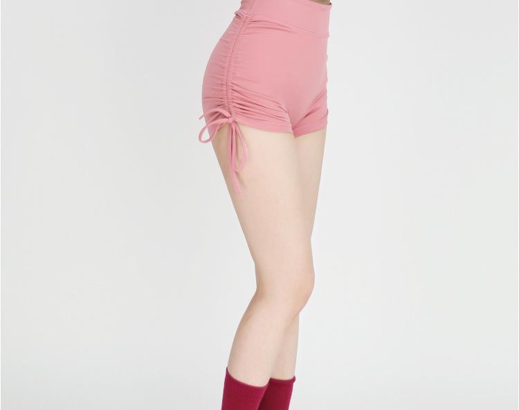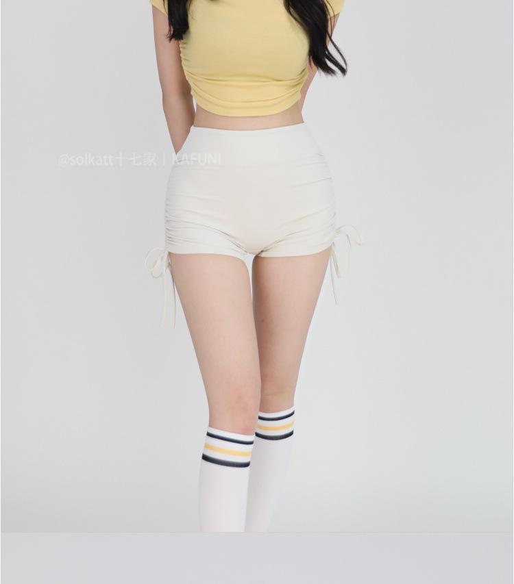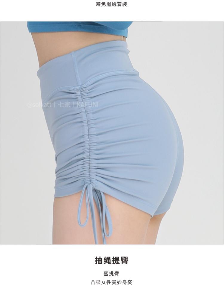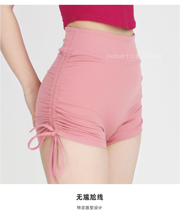 Shorts Deportivos de Cadera Sin Línea Embarazosa Cordón Lateral Desnudo Cintura Alta Pantalones Cortos Calientes Cadera Fitness Triple Pantalones Cortos para Mujer