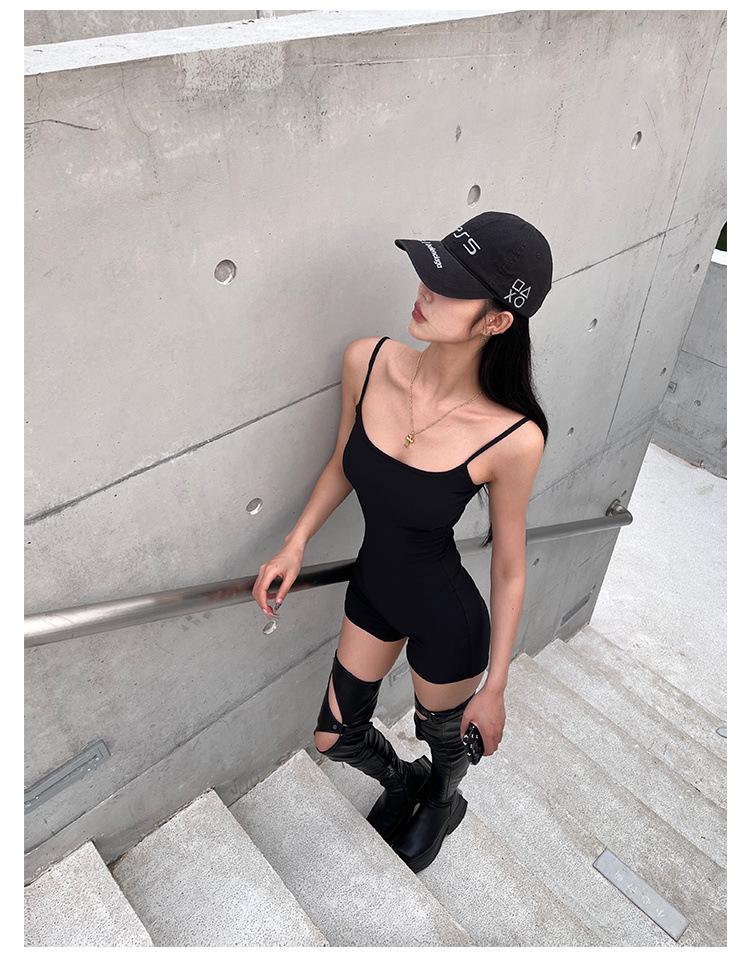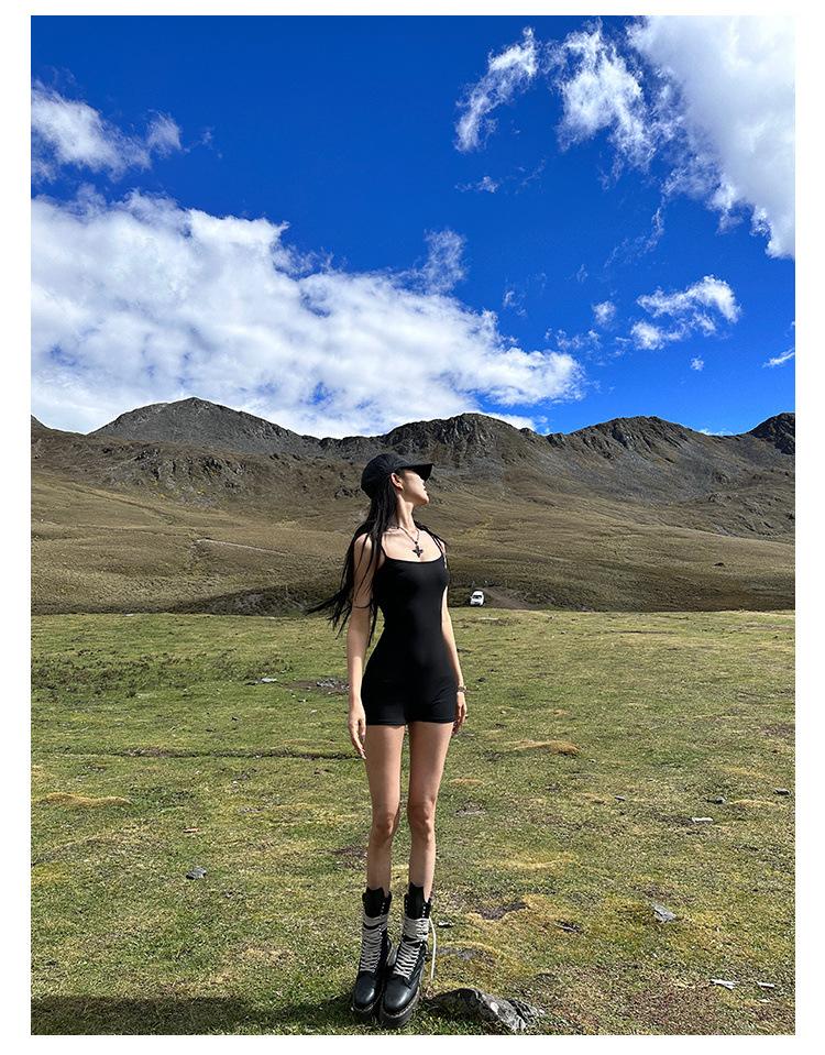 Mono ajustado negro transfronterizo de AliExpress para mujer, otoño e invierno, sexy, de tirantes