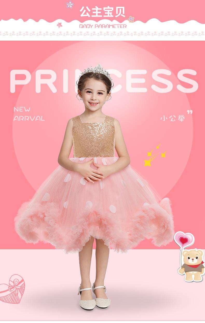 Vestido infantil de Amazon Source, diseño de lazo, vestido de tutú rosa con lentejuelas, vestido de princesa de rendimiento irregular.