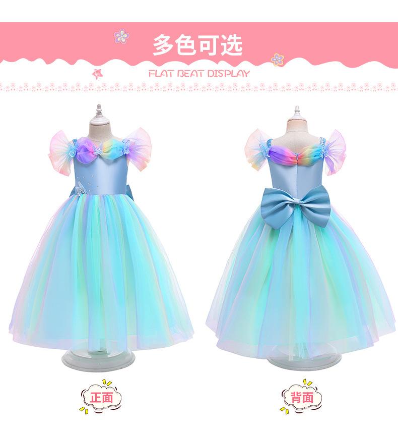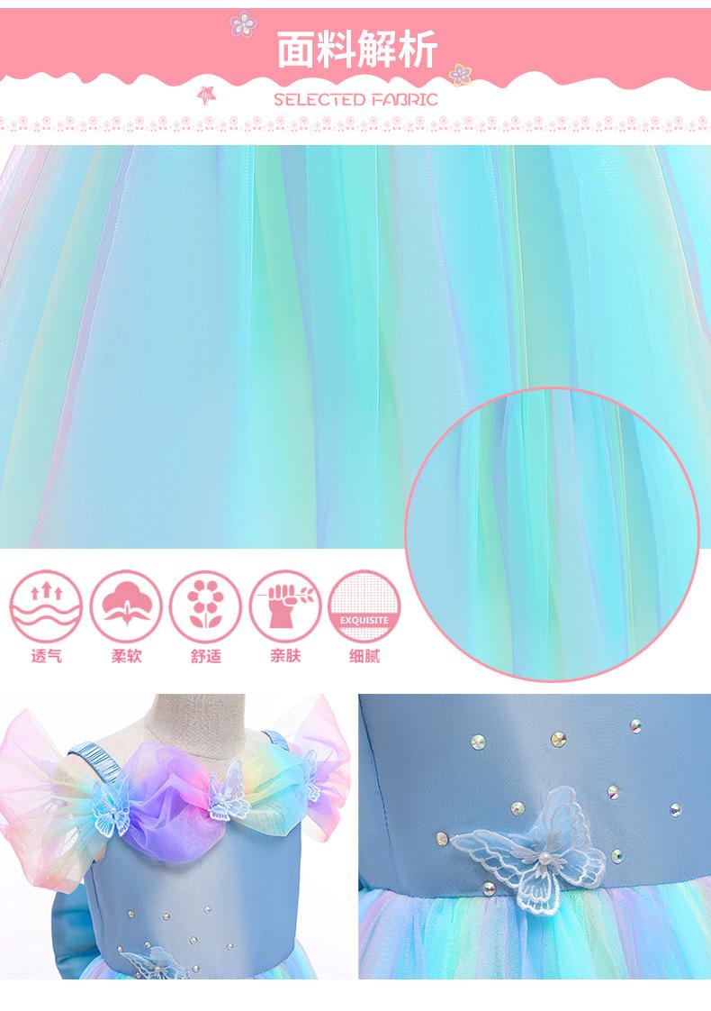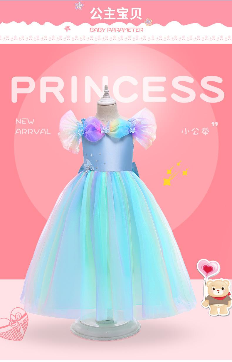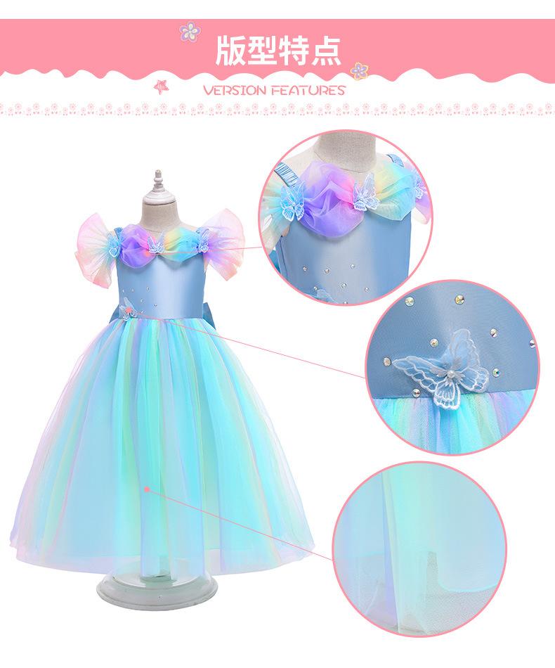 Vestido infantil de comercio exterior con cinturón de malla transfronterizo, vestido de Cenicienta con mariposas, vestido para niña