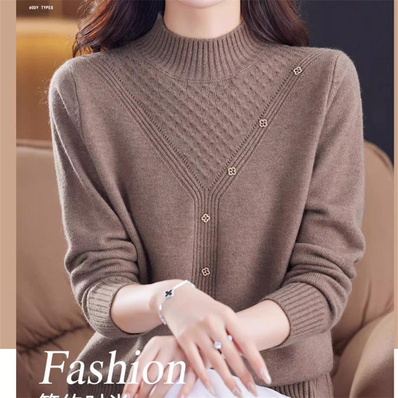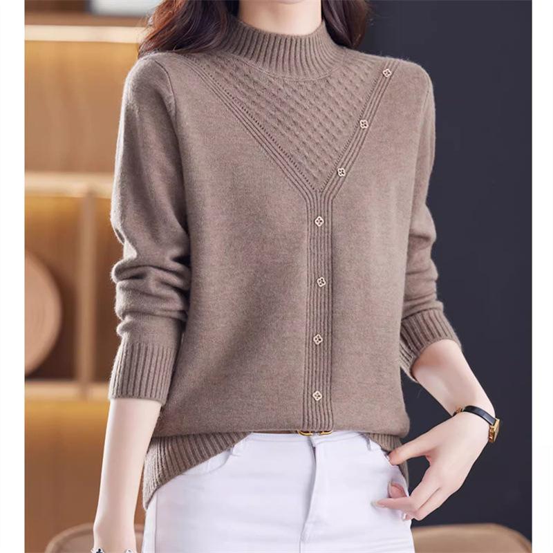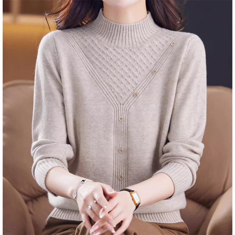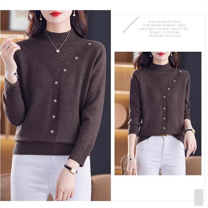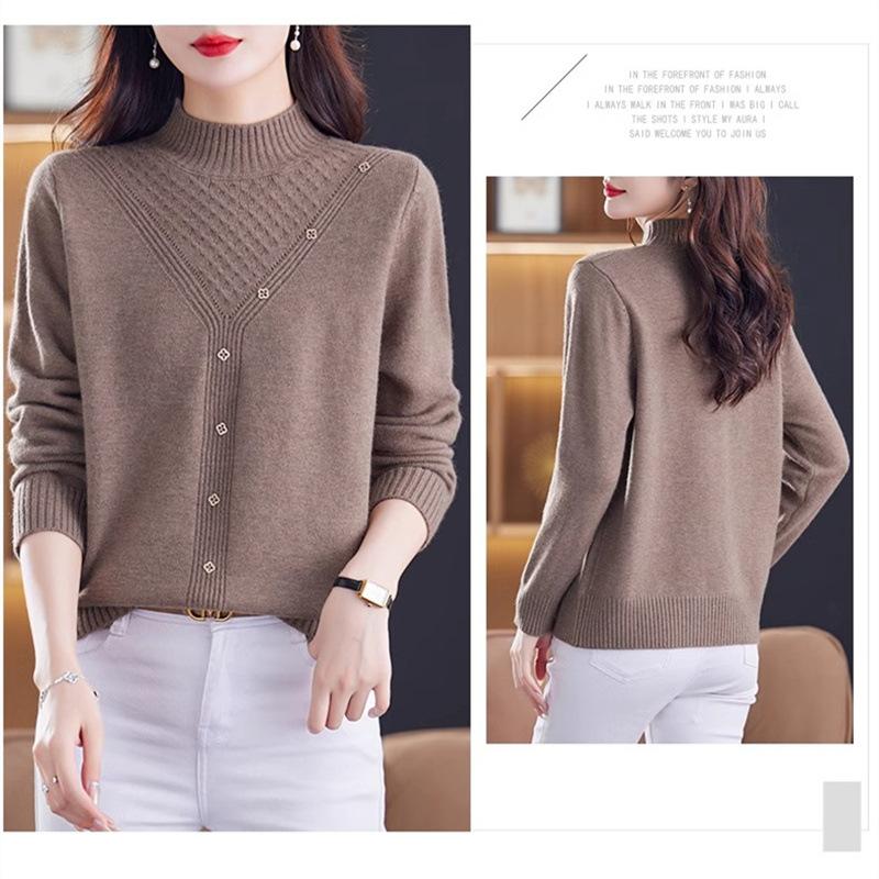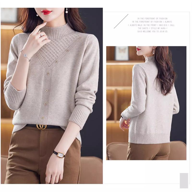 Suéter Interior de Cuello Alto Medio para Mujer 2024 Nueva Moda de Otoño e Invierno Estilo Extranjero Holgado Top Tejido de Madre Camiseta Básica