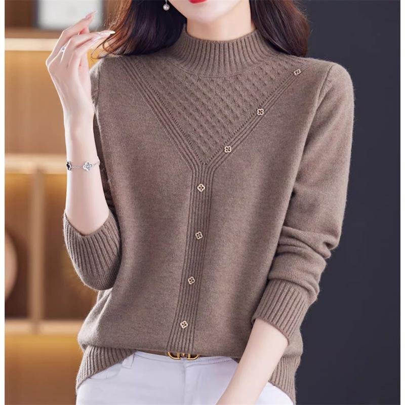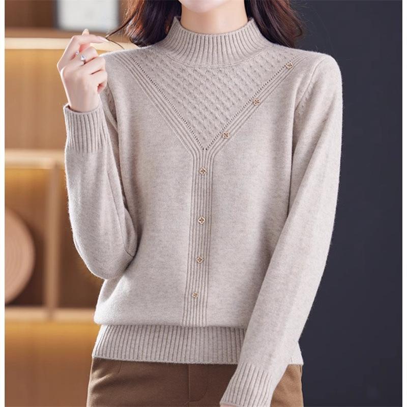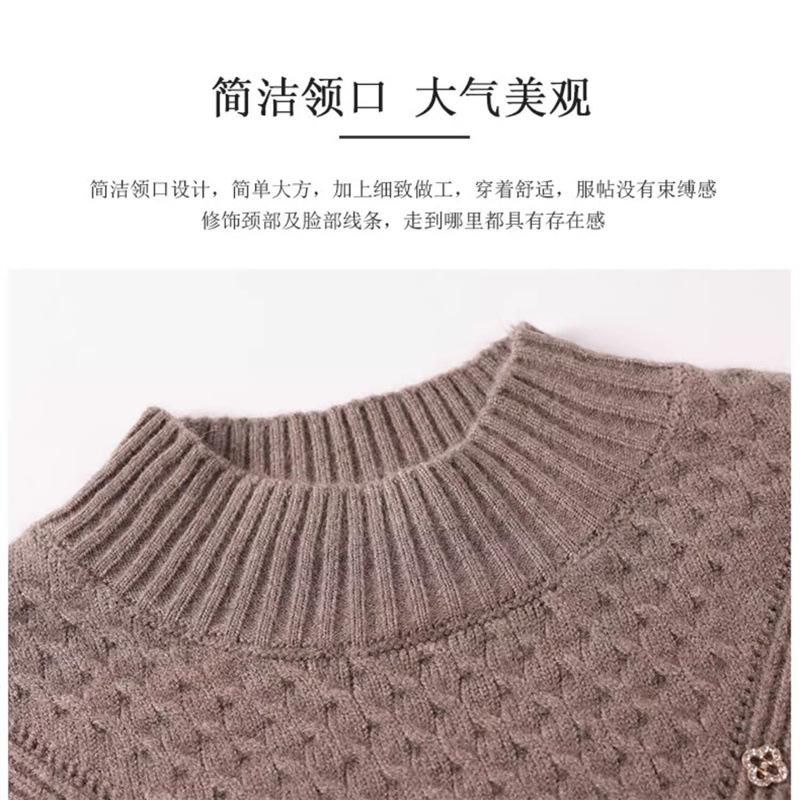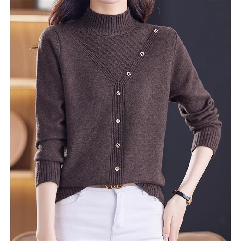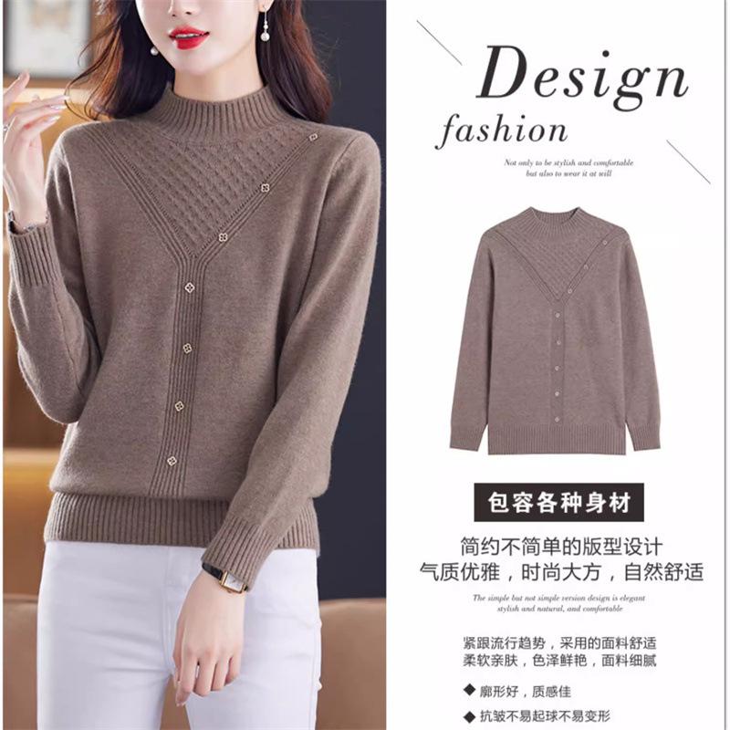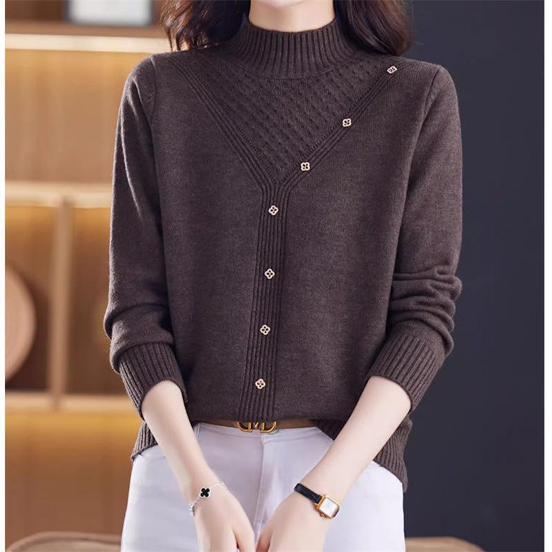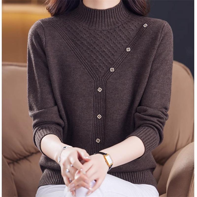 Suéter Interior de Cuello Alto Medio para Mujer 2024 Nueva Moda de Otoño e Invierno Estilo Extranjero Holgado Top Tejido de Madre Camiseta Básica