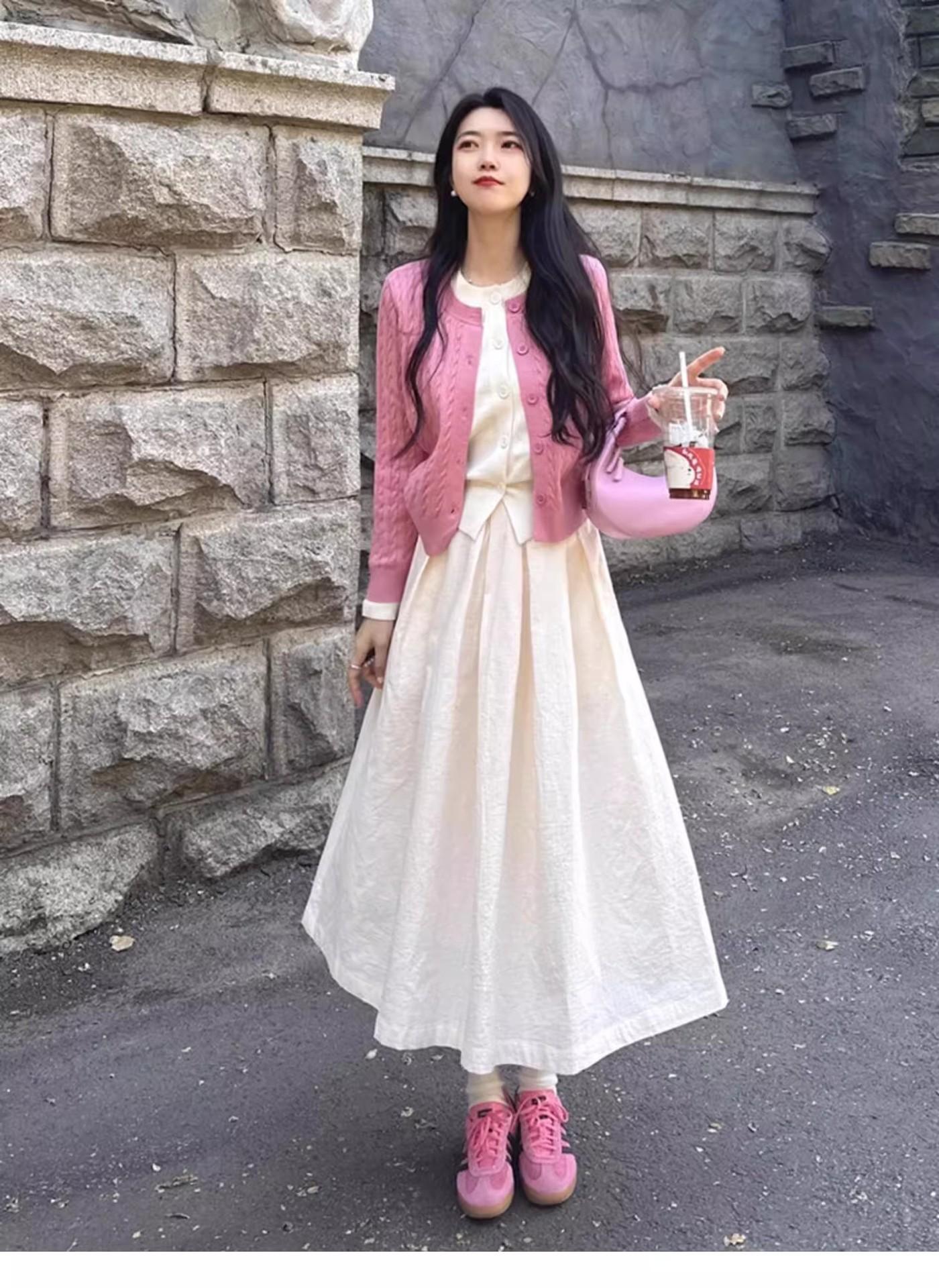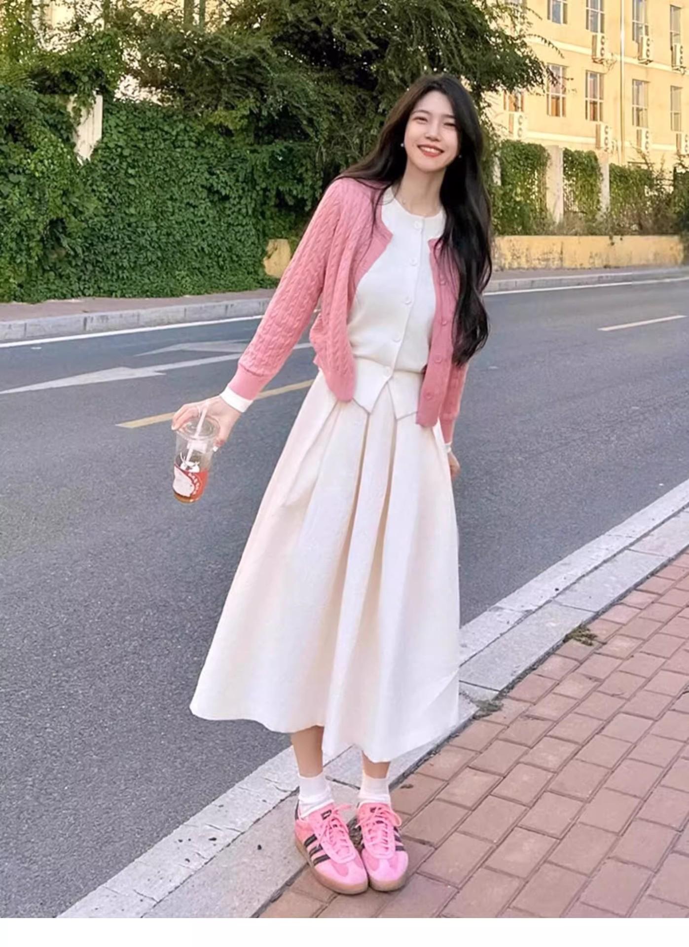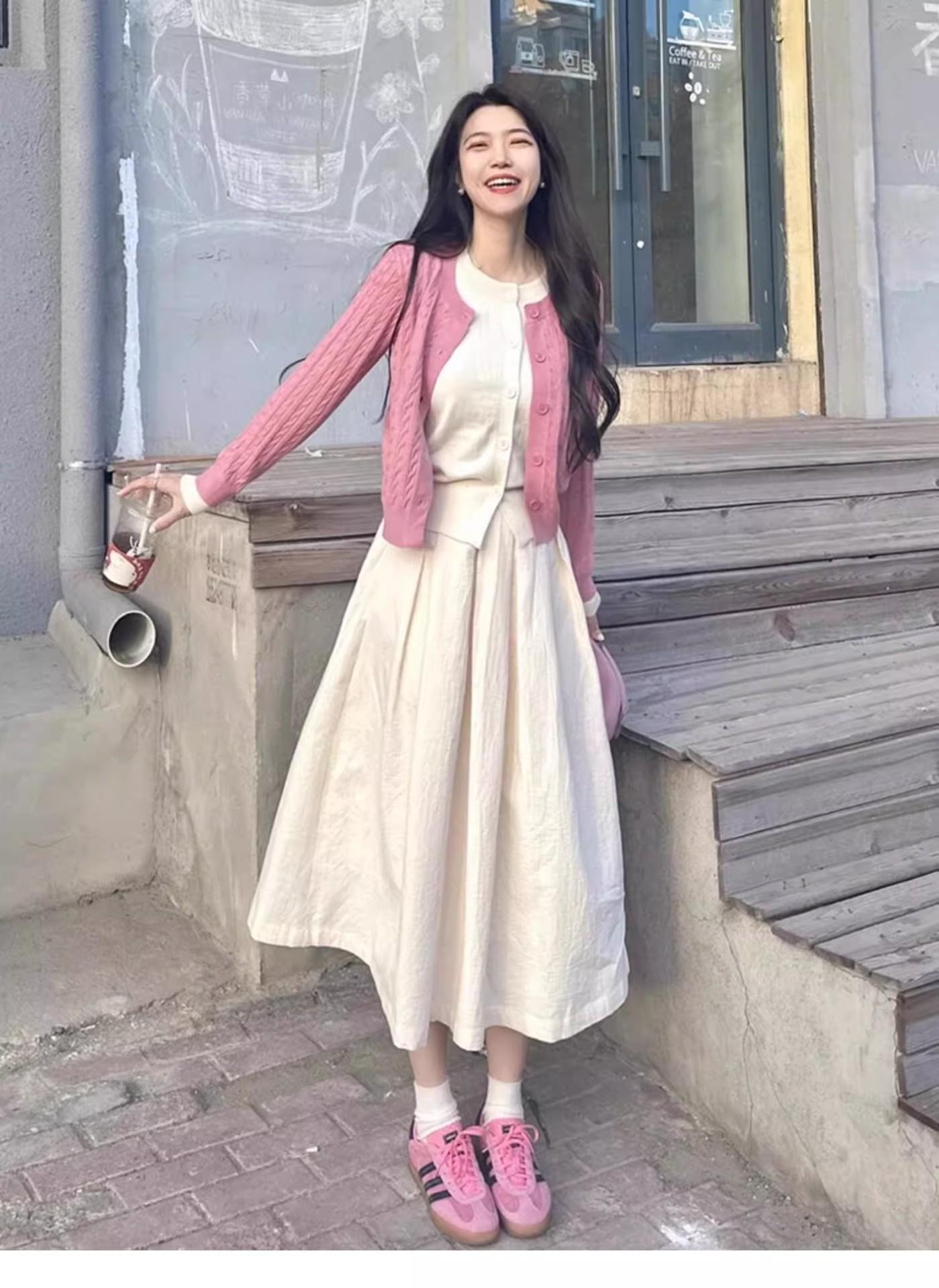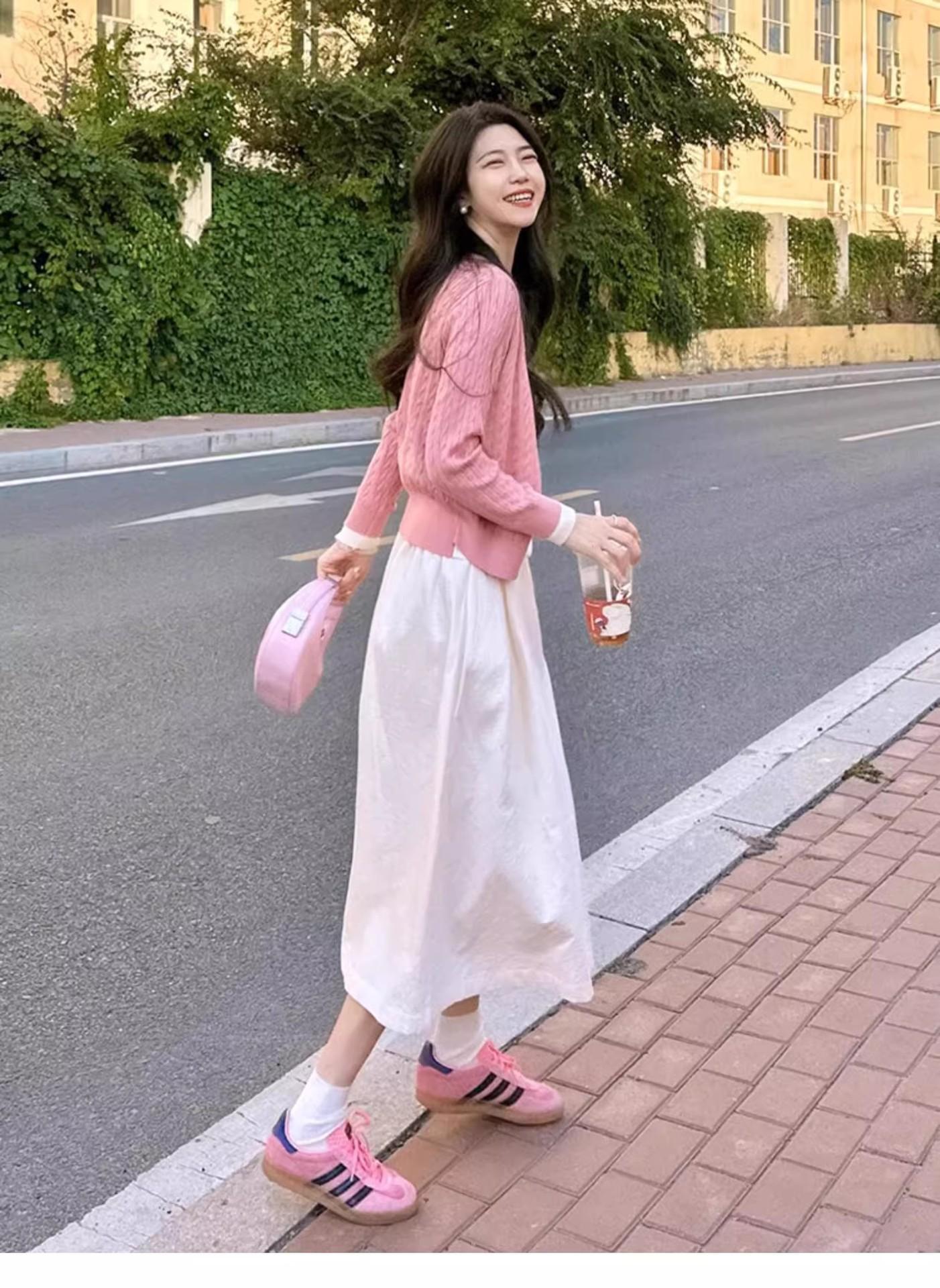 Cárdigan de Punto Nuevo de Primavera para Mujer Diseño Nicho Trenzado Falso Dos Piezas Suéter Chaqueta Top