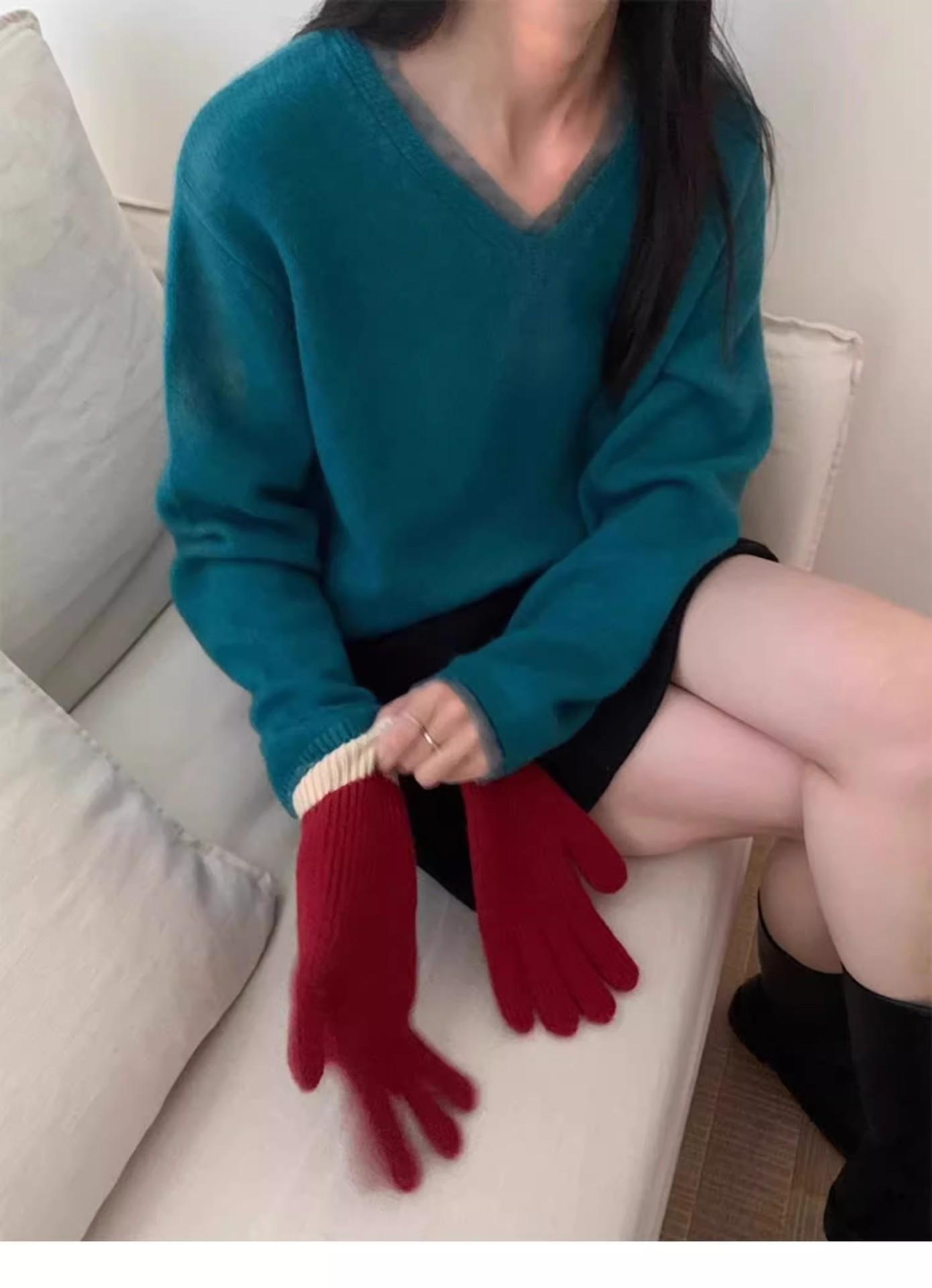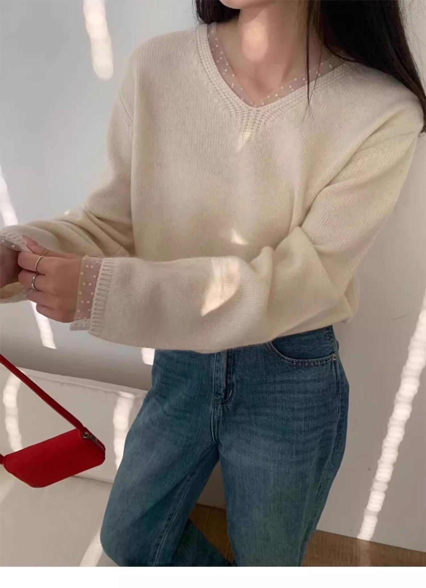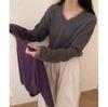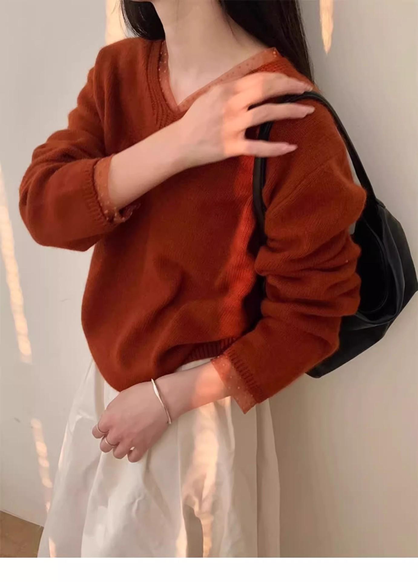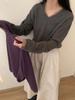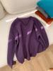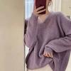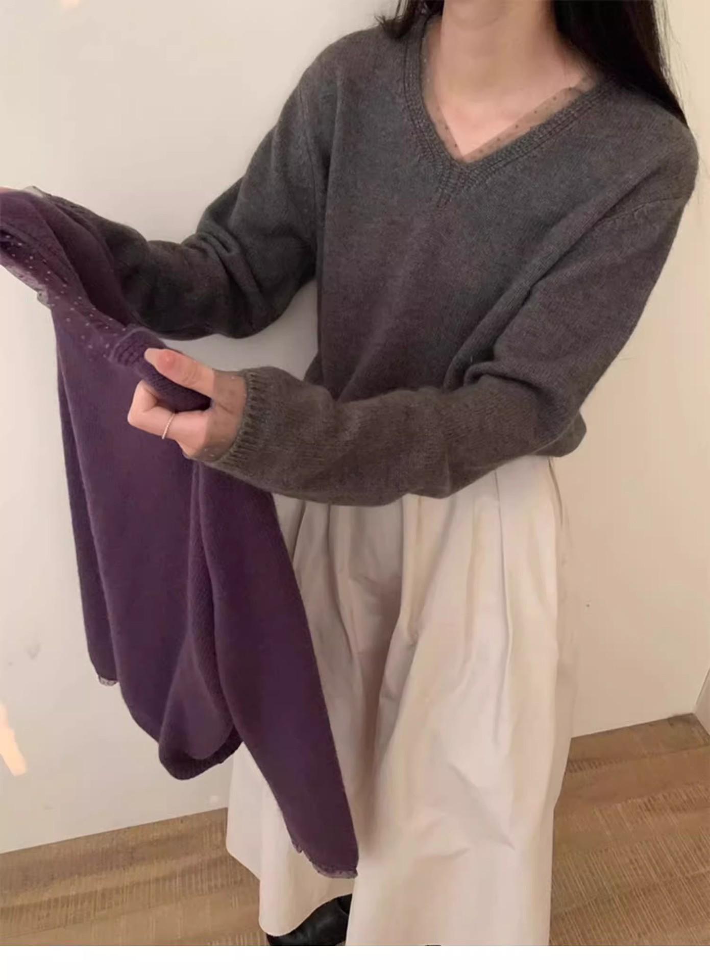 Suéter morado con cuello en V y encaje de alta calidad para mujer, prenda exterior holgada de estilo perezoso para otoño e invierno, jersey de punto.