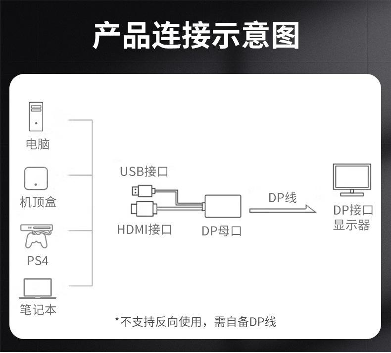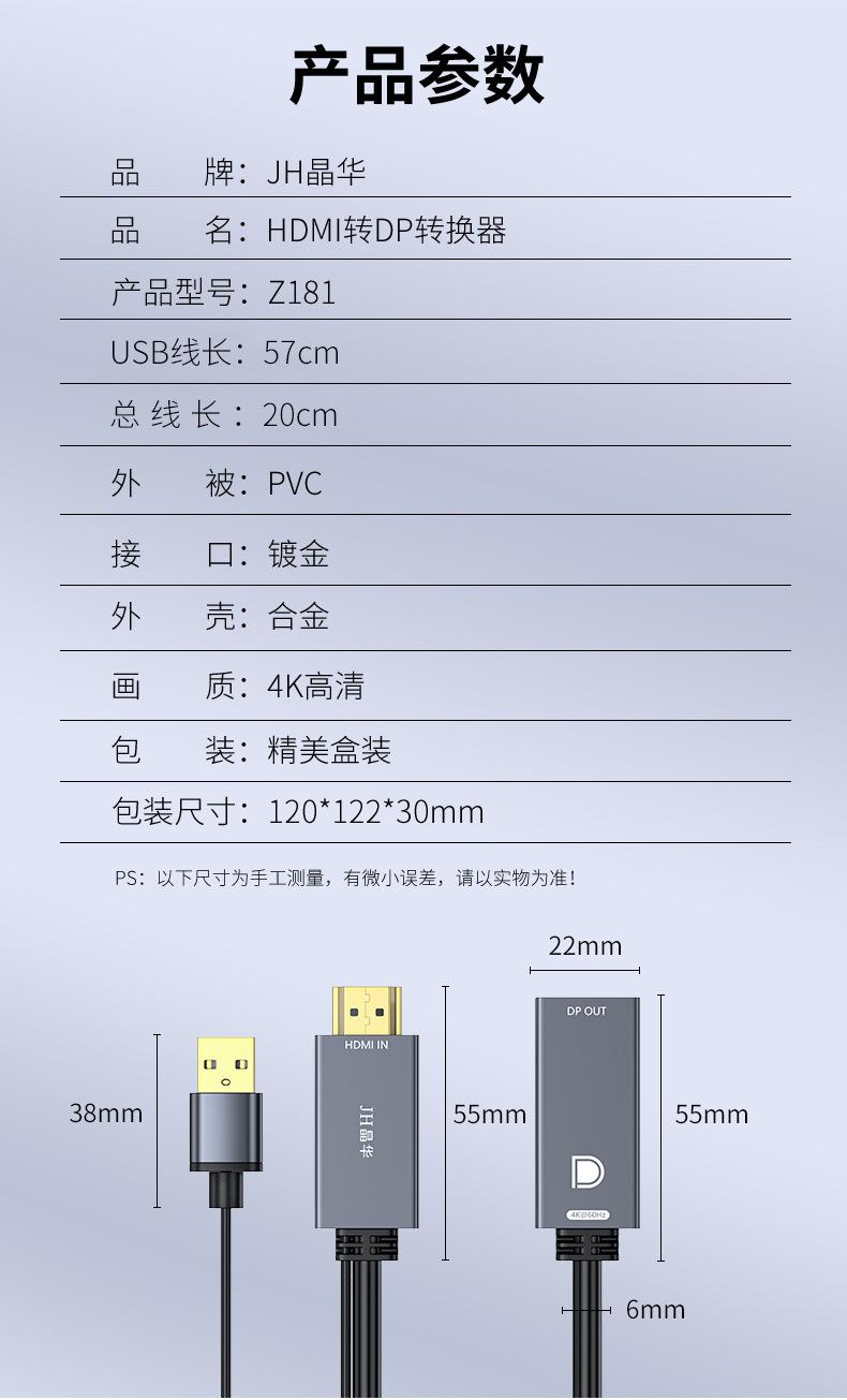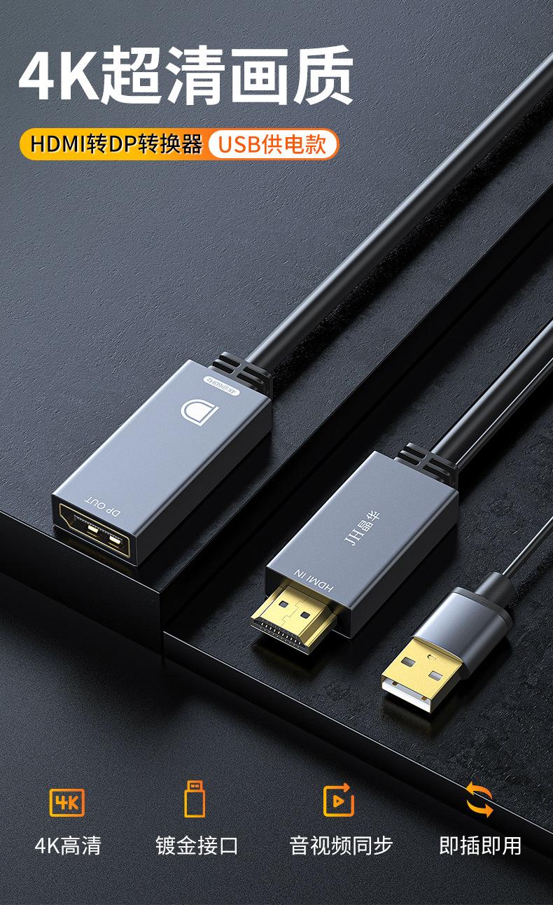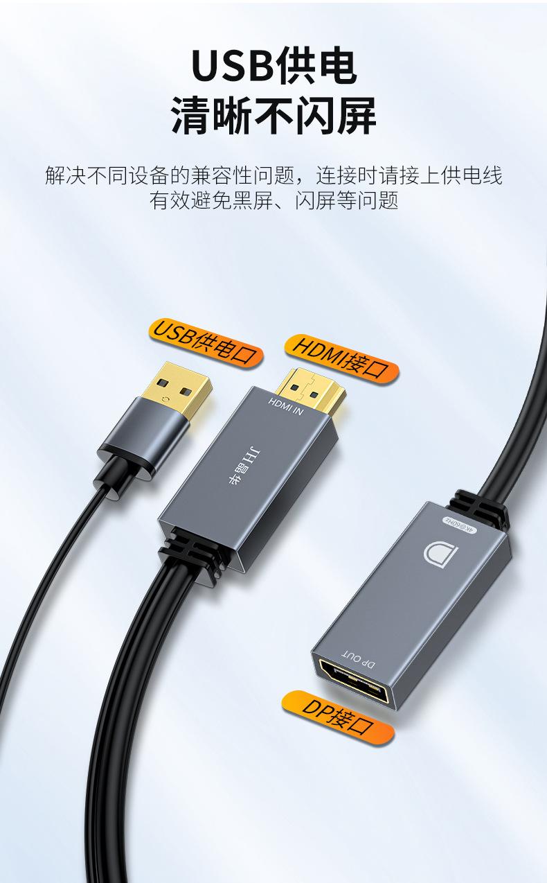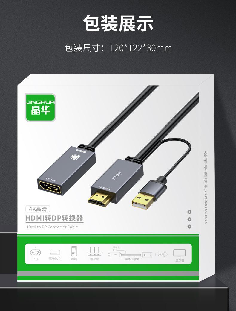 Cable de Video Jinghua HDMI a dp 4K60Hz Hd dp con Fuente de Alimentación Cable de Conexión Externa para DesKtop NotebooK