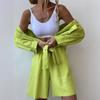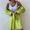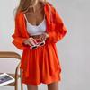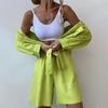 Conjunto de Camisa de Manga Larga Abotonadura Sencilla Color Sólido Nuevo Europeo y Americano Primavera 2024 Suelto Casual Shorts en Stock Versátil