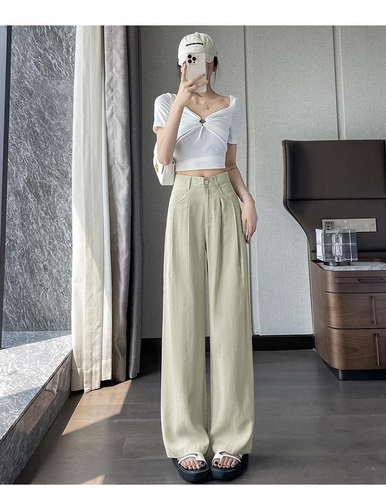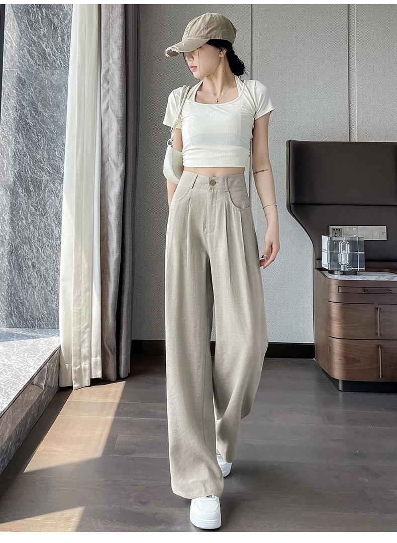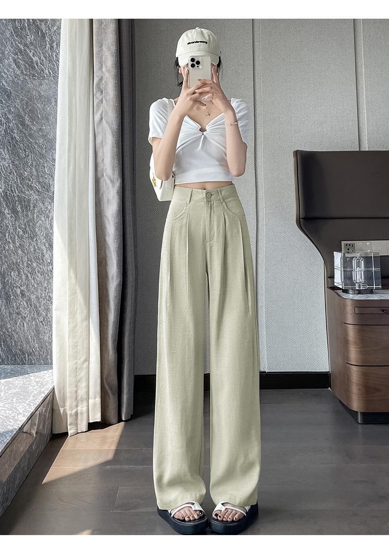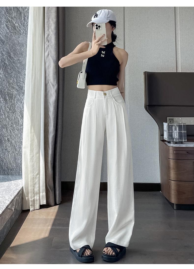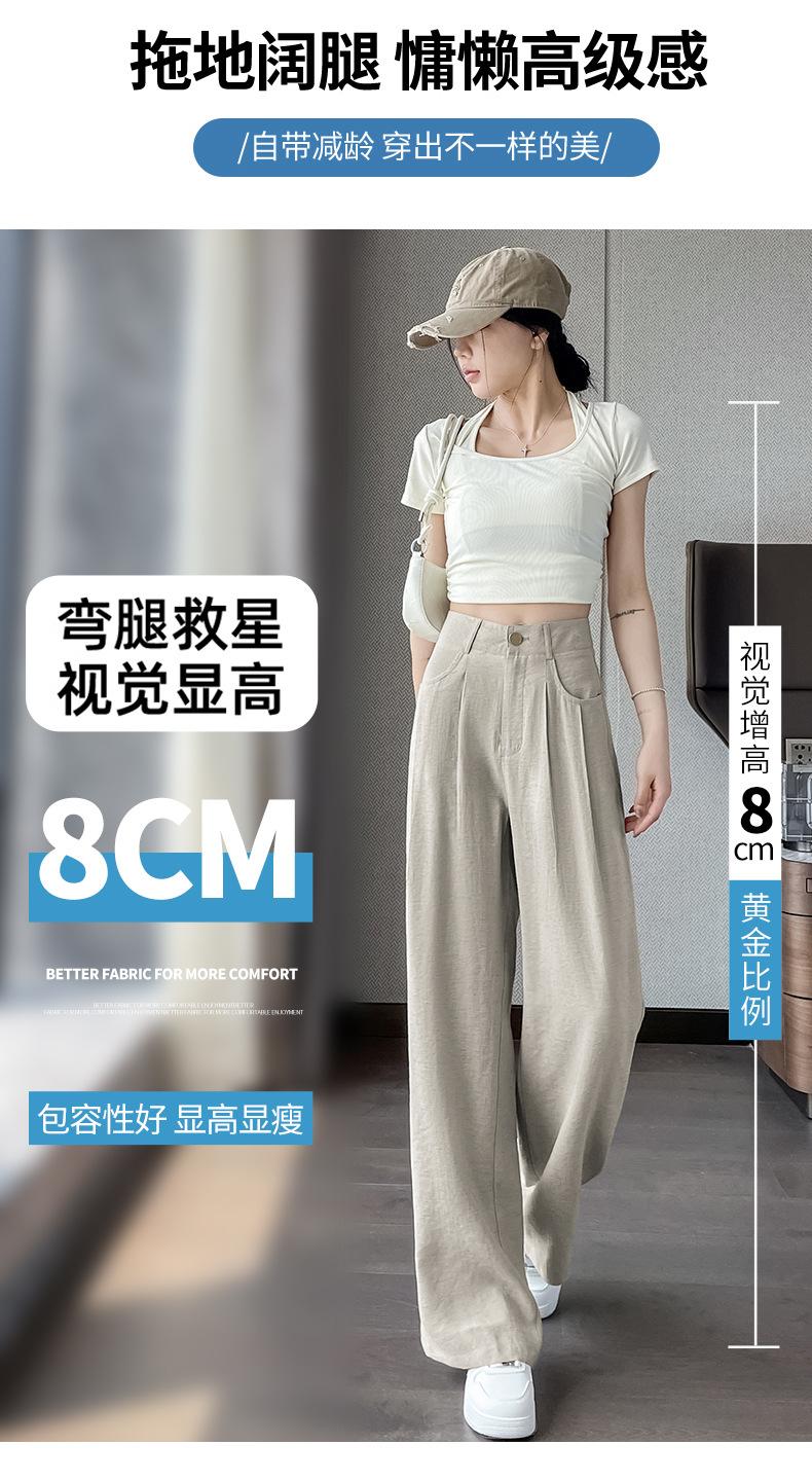 Pantalones de lino holgados, rectos, de cintura alta y pierna ancha, informales, para mujer, novedad de verano 2024