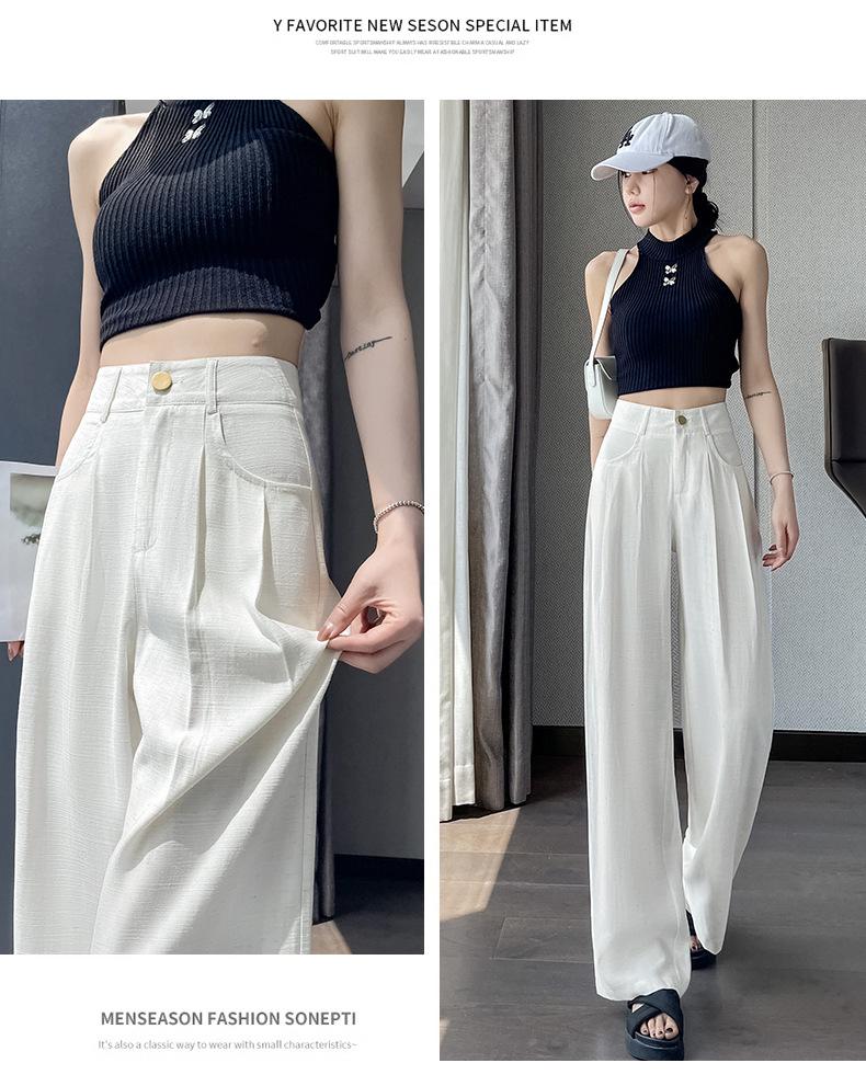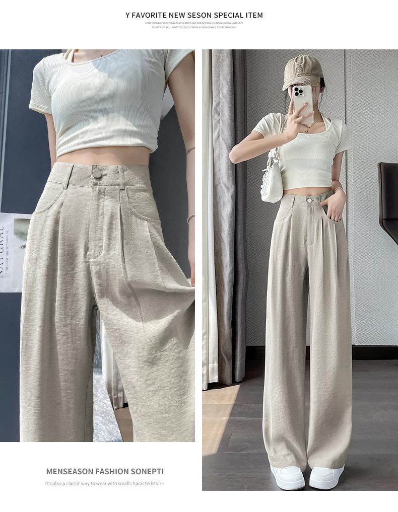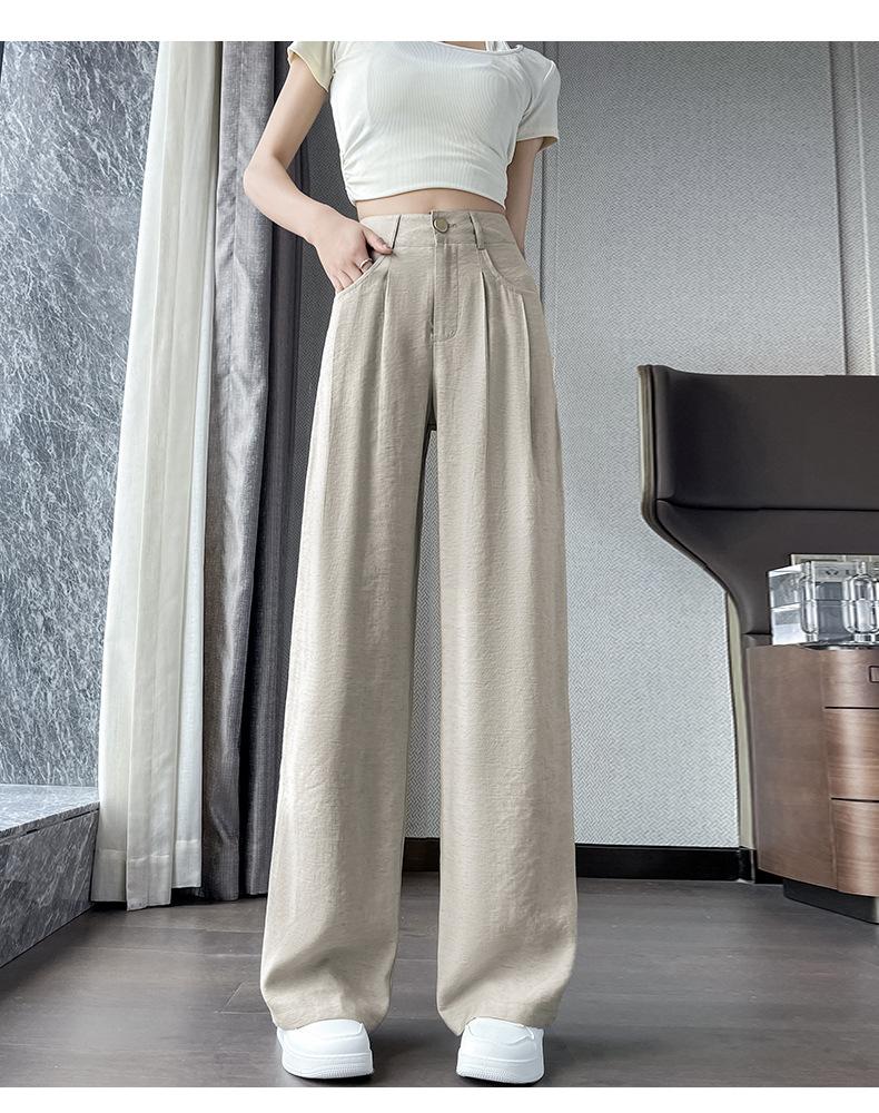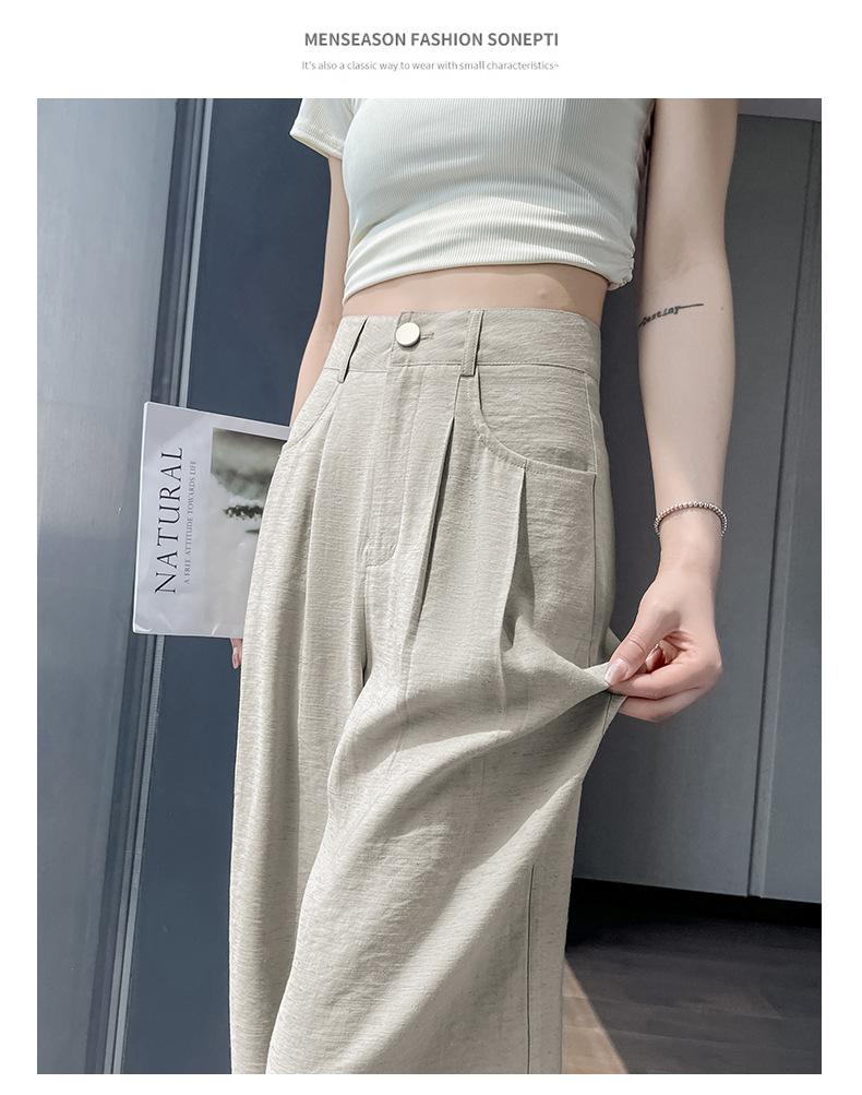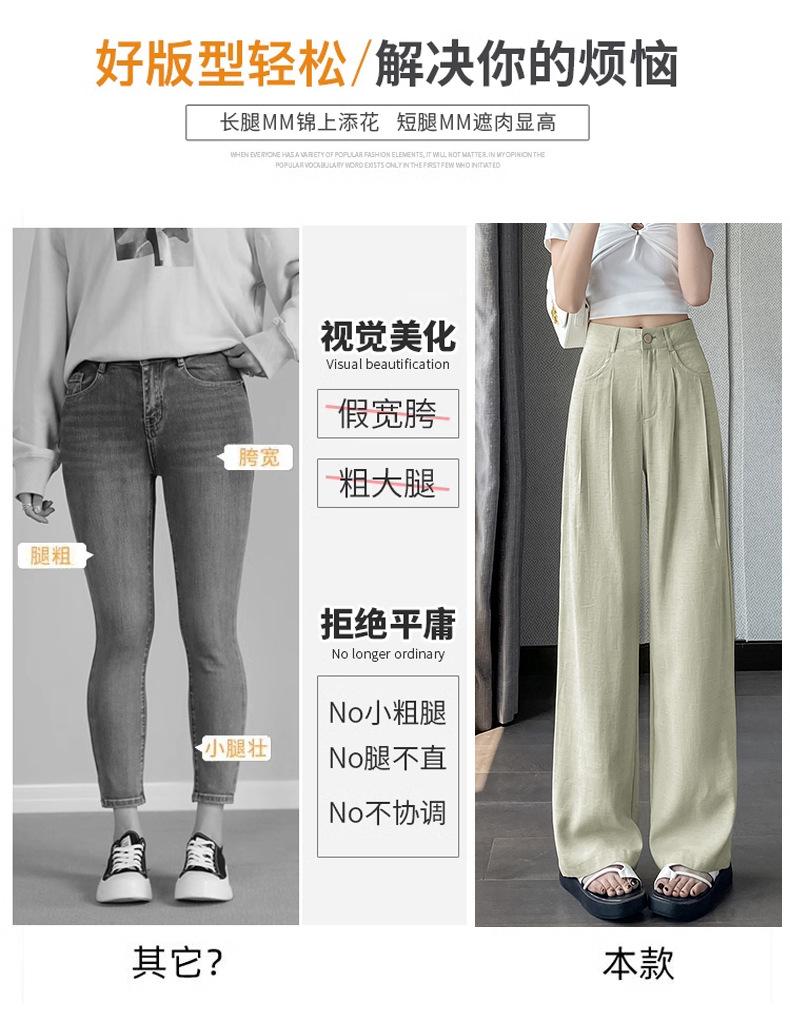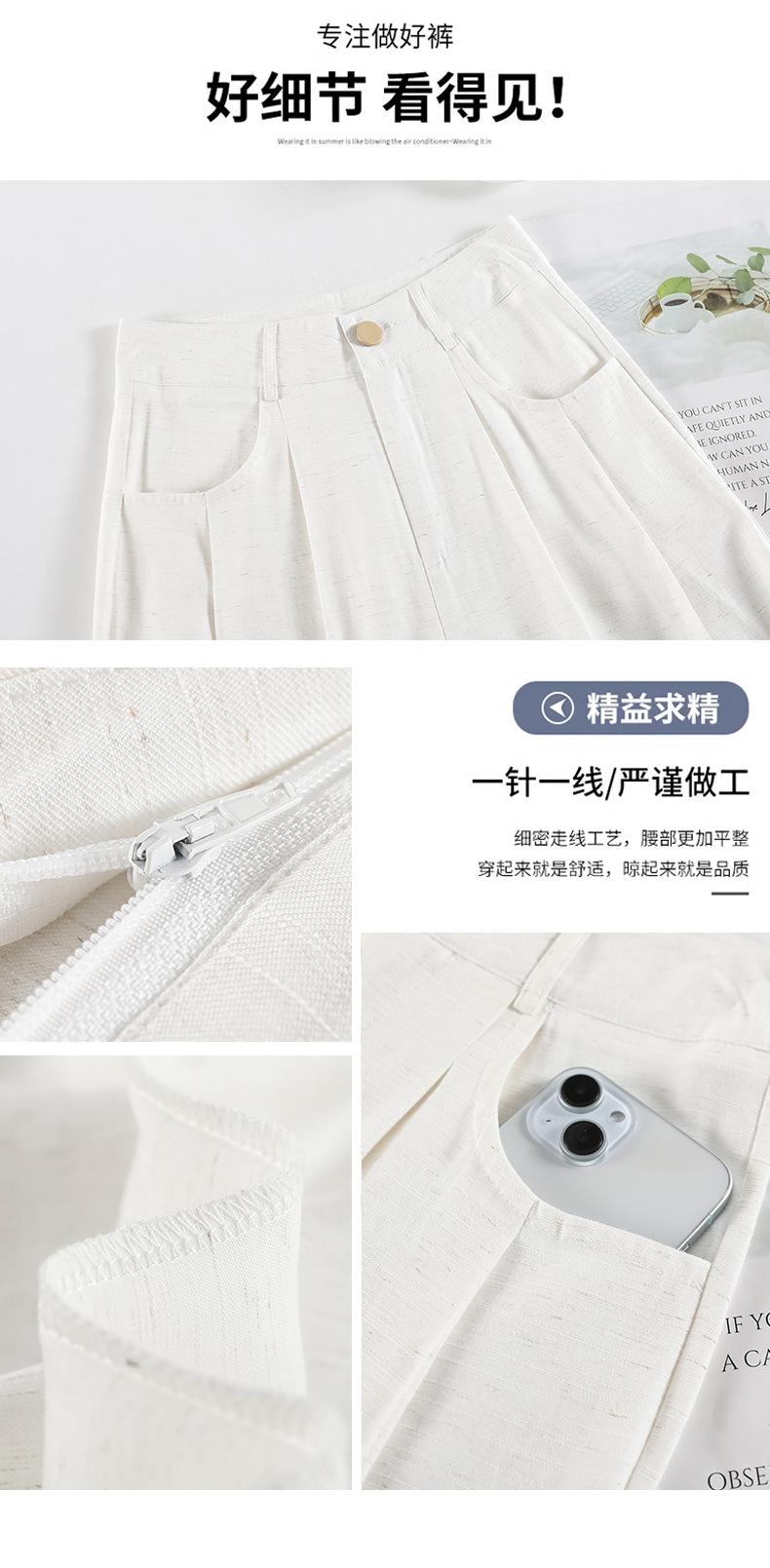 Pantalones de lino holgados, rectos, de cintura alta y pierna ancha, informales, para mujer, novedad de verano 2024