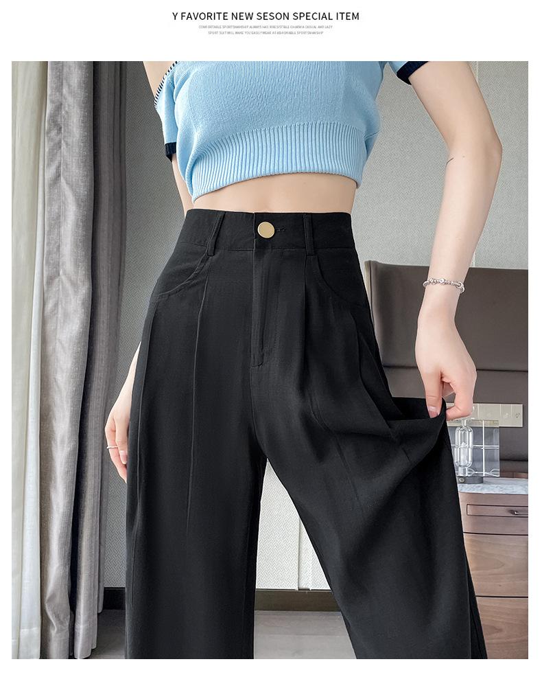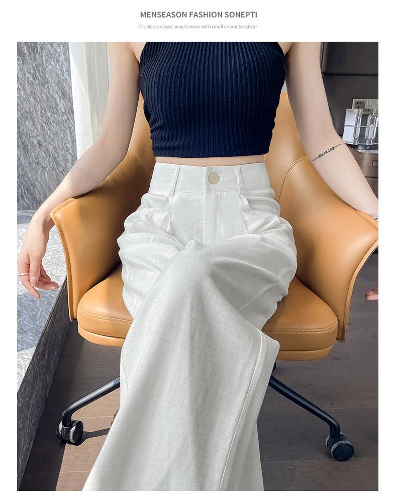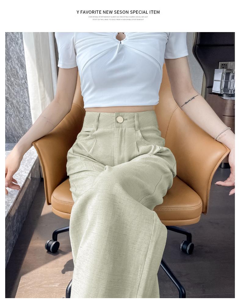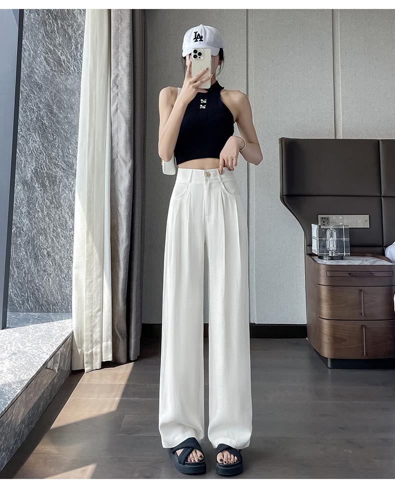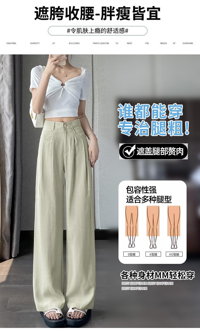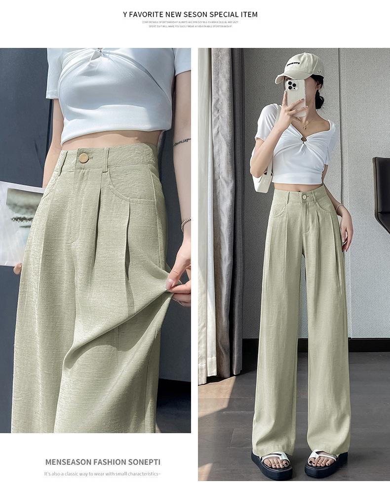 Pantalones de lino holgados, rectos, de cintura alta y pierna ancha, informales, para mujer, novedad de verano 2024