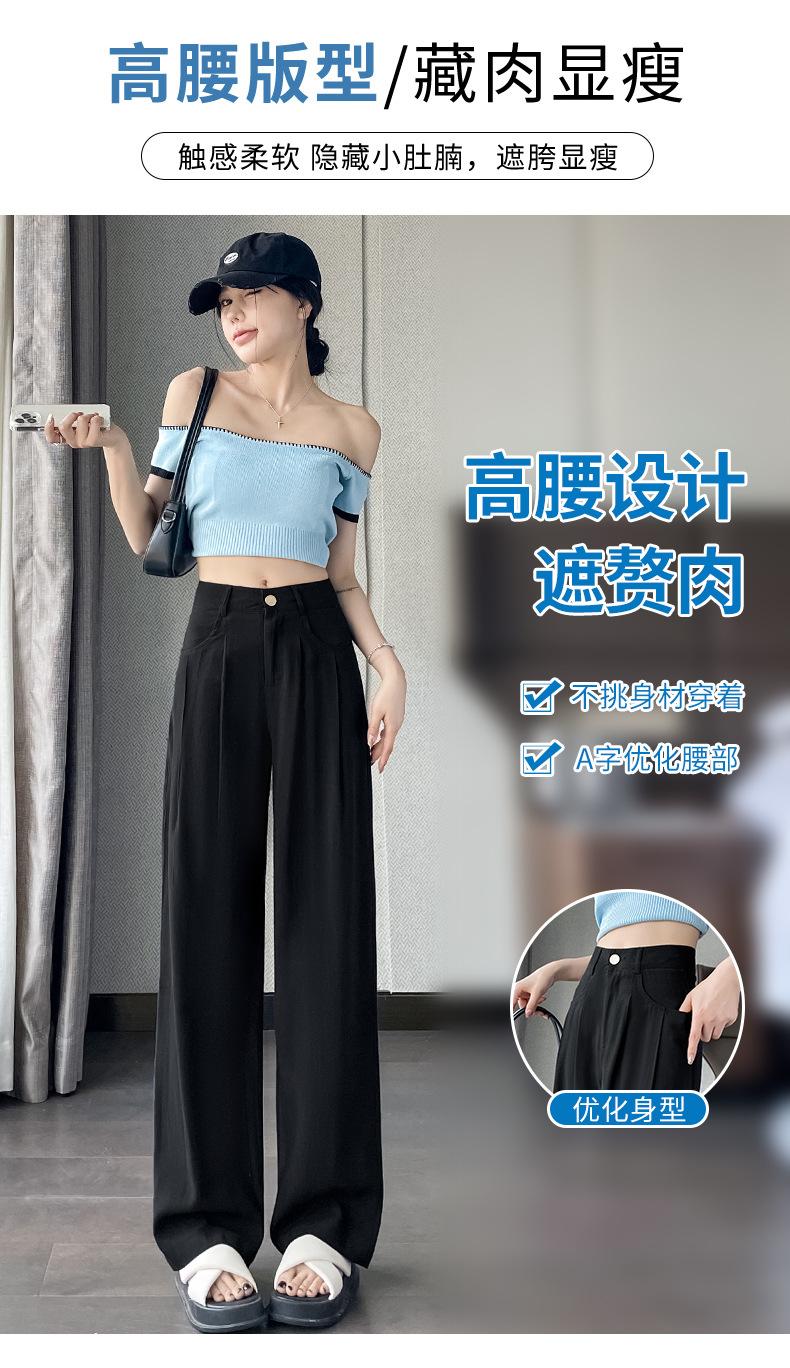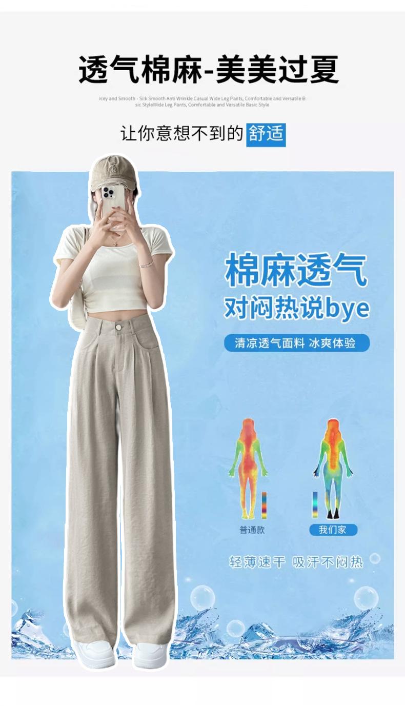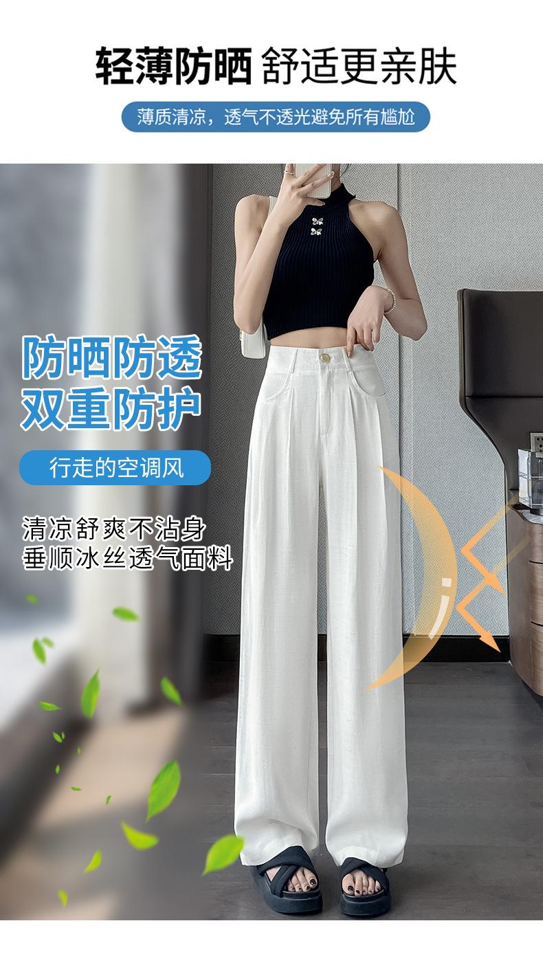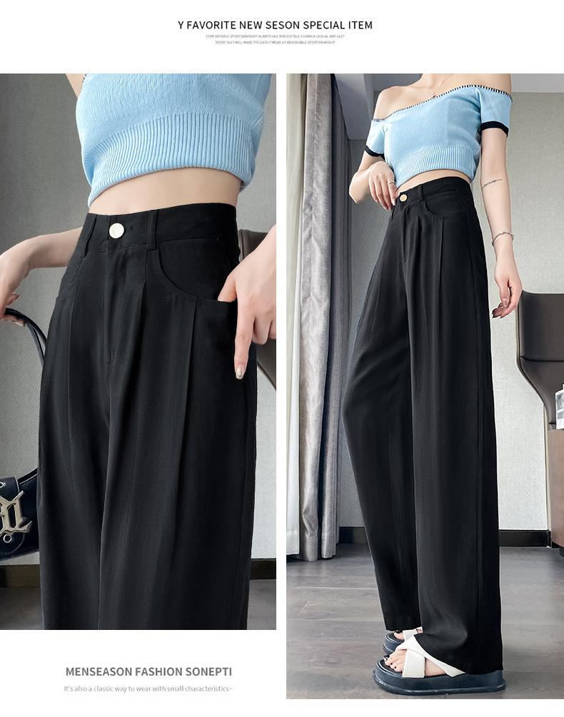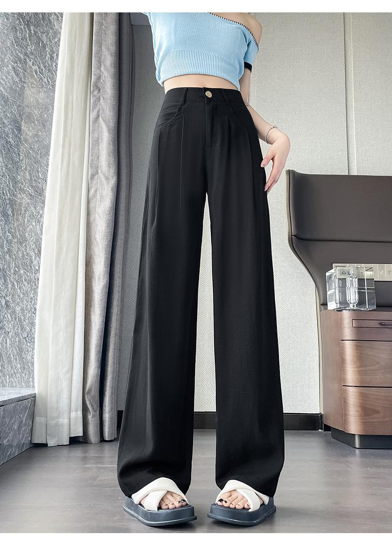 Pantalones de lino holgados, rectos, de cintura alta y pierna ancha, informales, para mujer, novedad de verano 2024