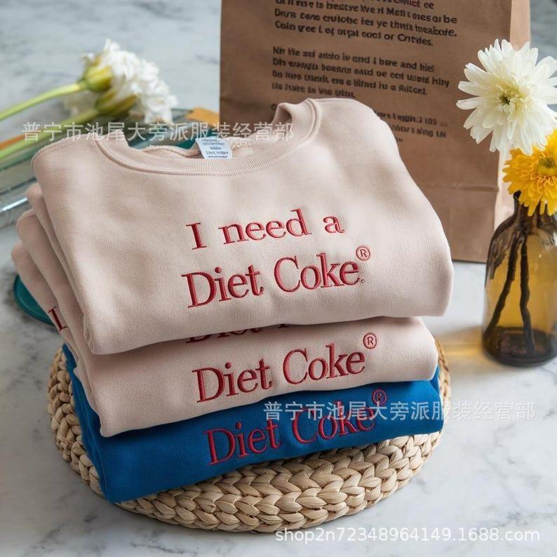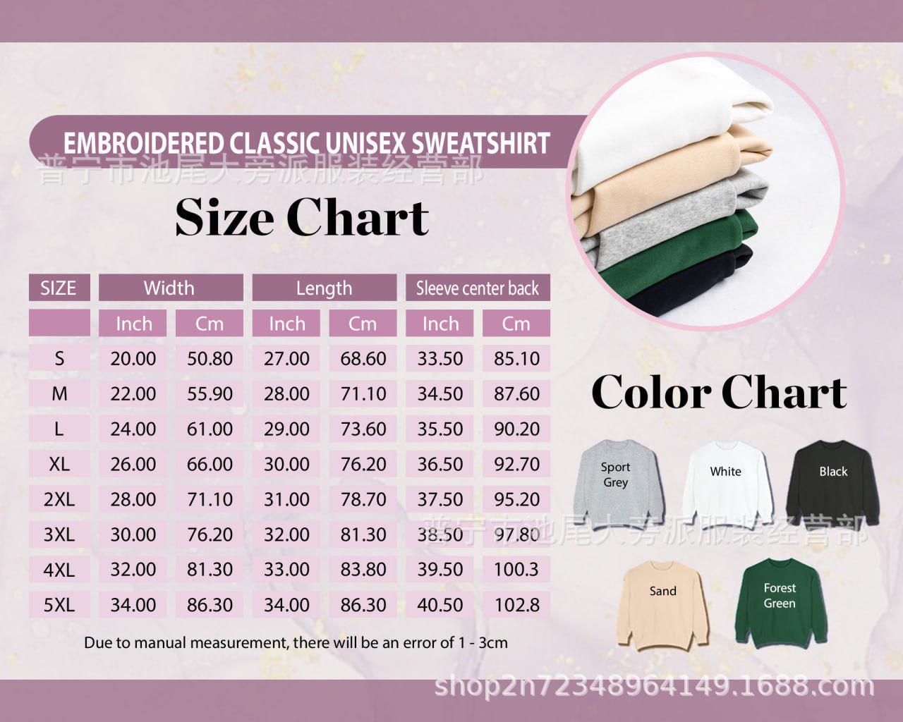 Apricot round neck sweatshirt [embroidery], Klein blue crew neck sweatshirt [embroidery], Gray round neck swea...