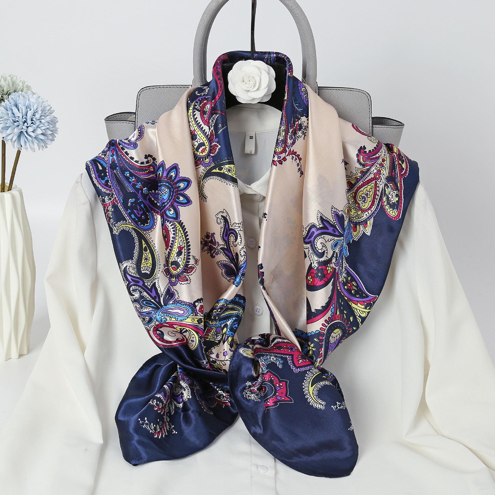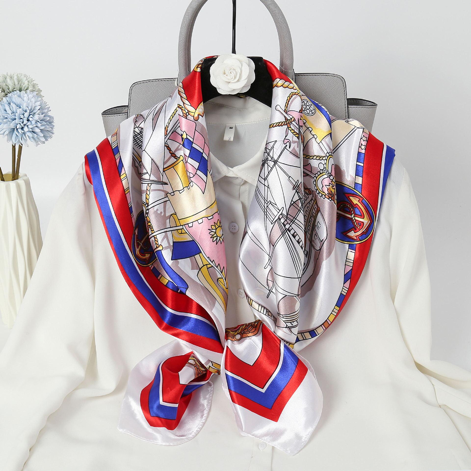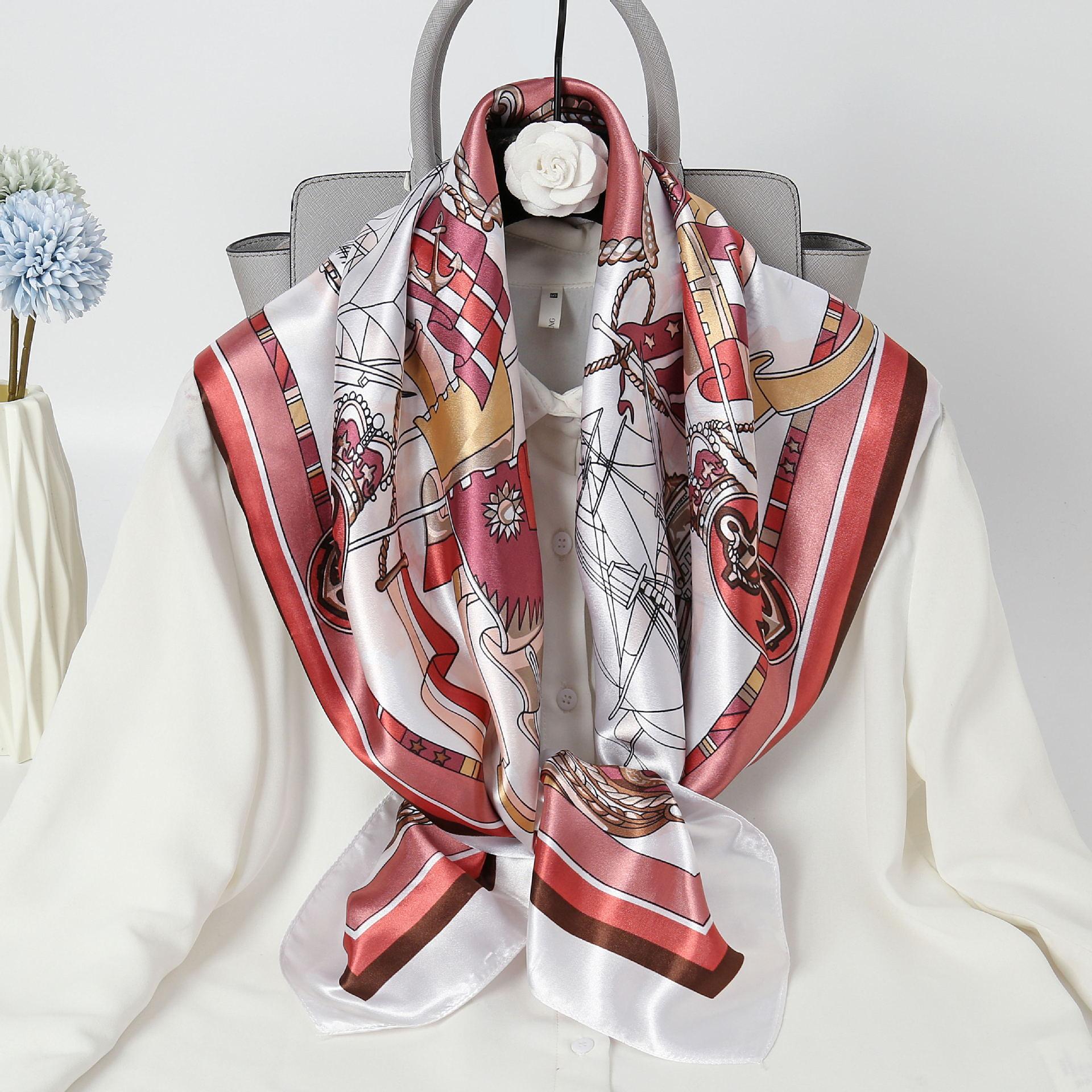 Bufanda cuadrada grande de satén de primavera y otoño de 90 cm, bufanda de moda occidental, bufanda cuadrada, bufanda decorativa, regalo de exhibición al por mayor